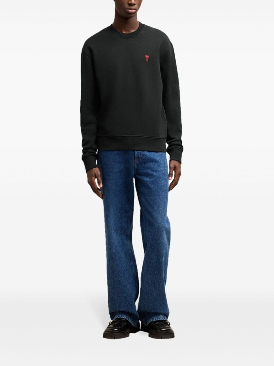 Черный хлопковый трикотаж, флис, фирменный мотив монограммы Ami de Coeur, вышитый логотип сзади, ребристые манжеты и подол, прямой подол. При покупке этой вещи унисекс имейте в виду, что она имеет стандартные мужские размеры.
