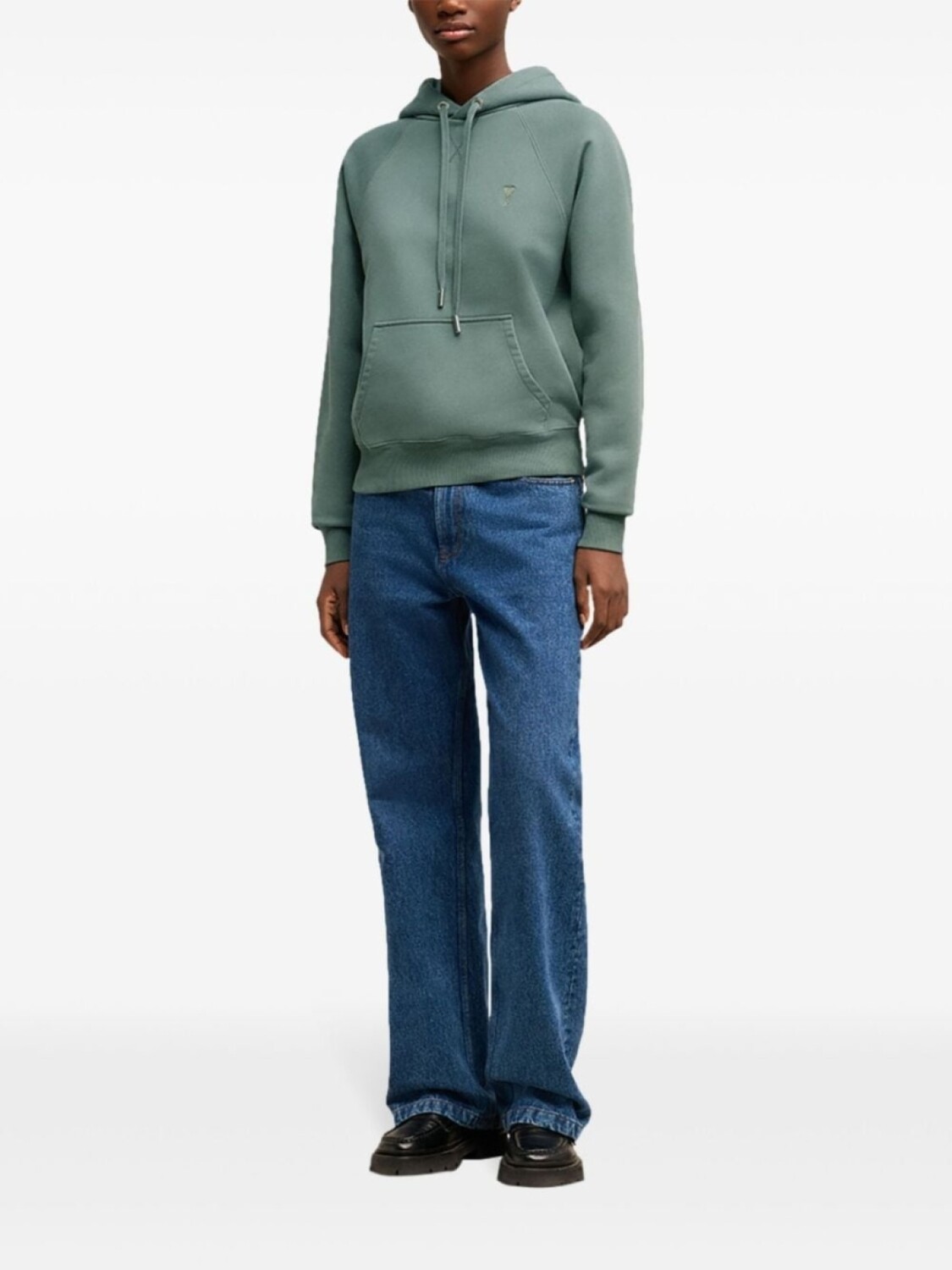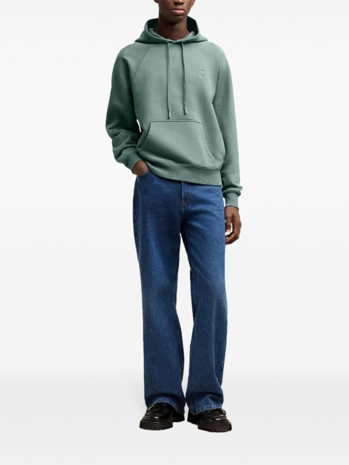 Мятно-зеленый, хлопок, ткань джерси, знаковая монограмма Ami de Coeur, затягивающийся на шнурок капюшон, длинные рукава реглан, подол и манжеты в рубчик, накладной карман спереди, прямой подол, Это унисекс-модель. Обратите внимание, что для нее используется мужская размерная сетка.