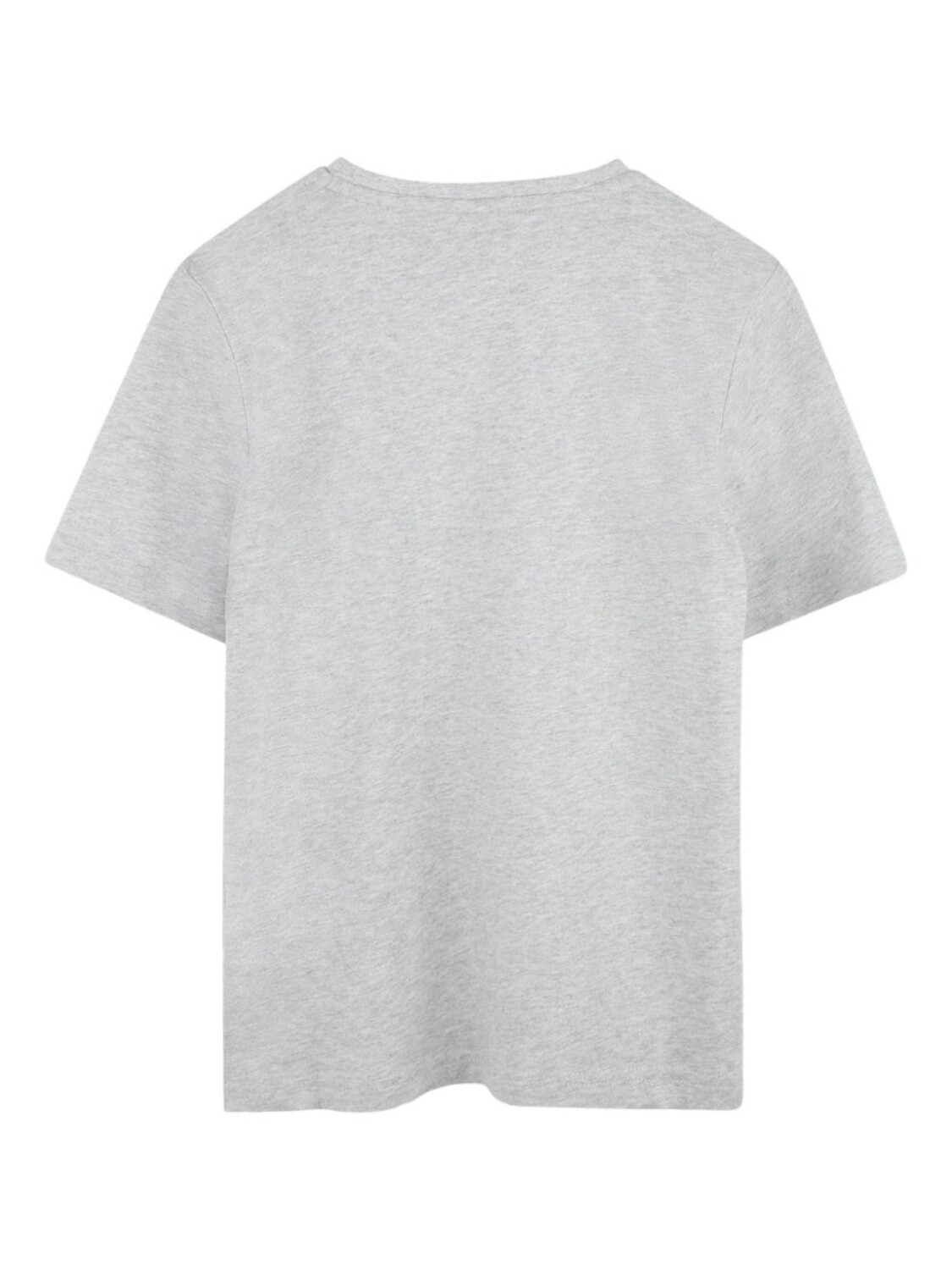 Серый хлопковый трикотаж текстура меланжевый эффект круглый вырез горловины короткие рукава логотип принт спереди прямой подол