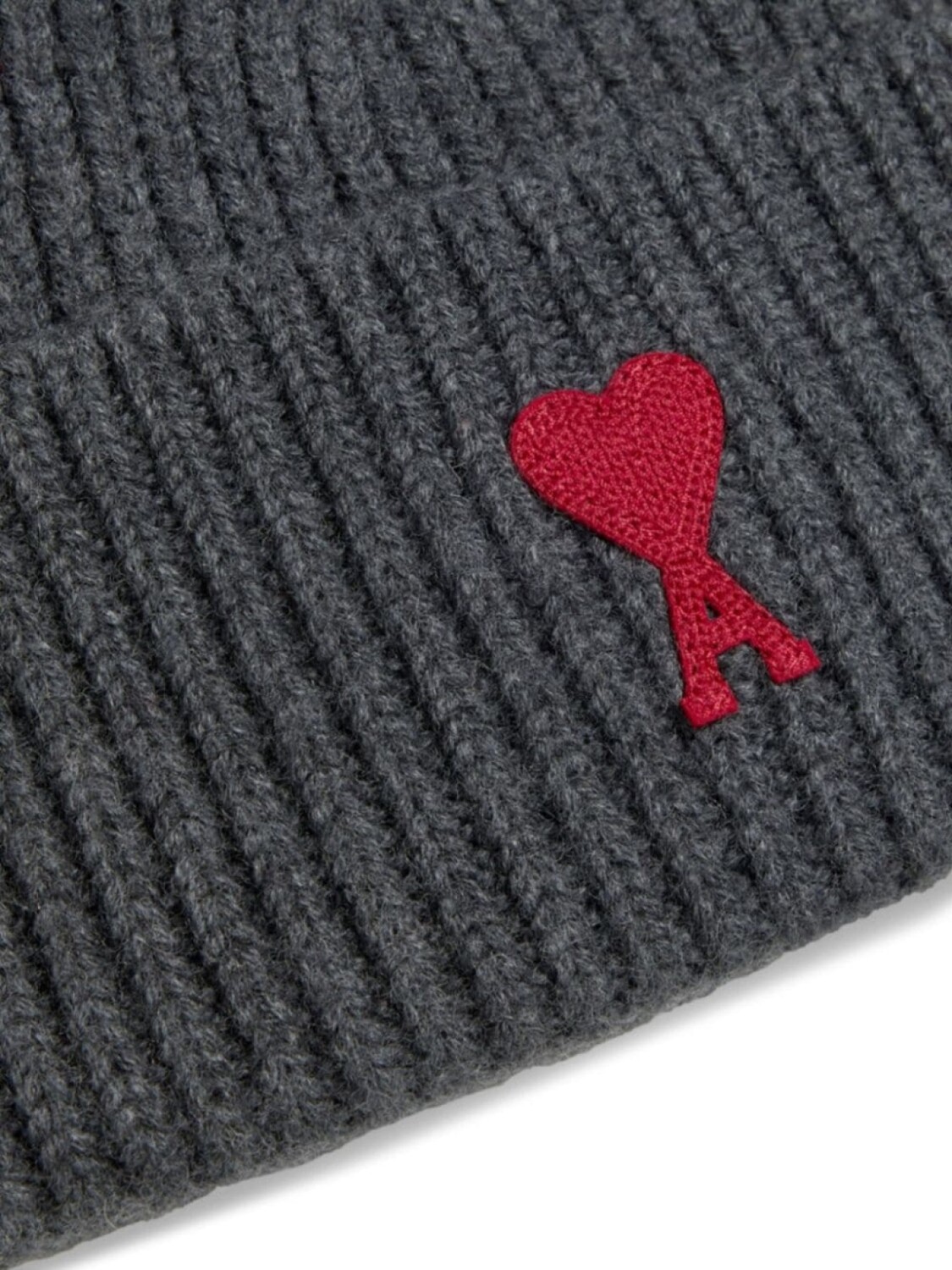 AMI Paris шерстяная шапка с вышитым логотипом, серый