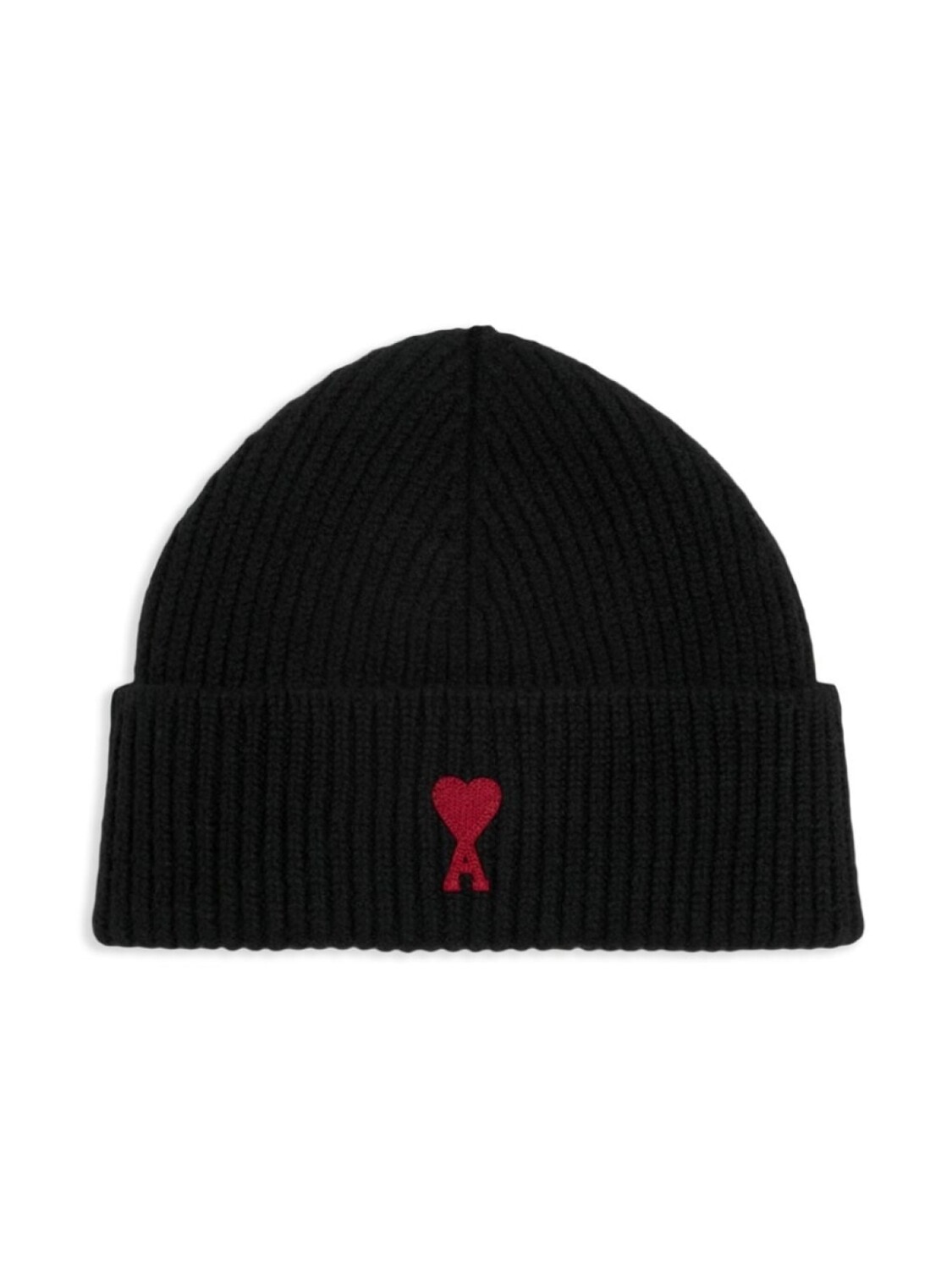 AMI Paris шерстяная шапка с вышитым логотипом, черный