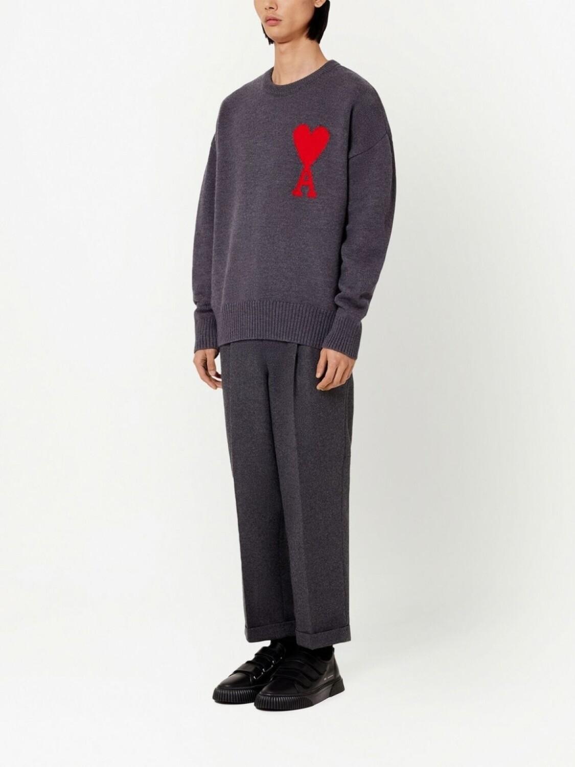 AMI Paris шерстяной джемпер с логотипом, серый