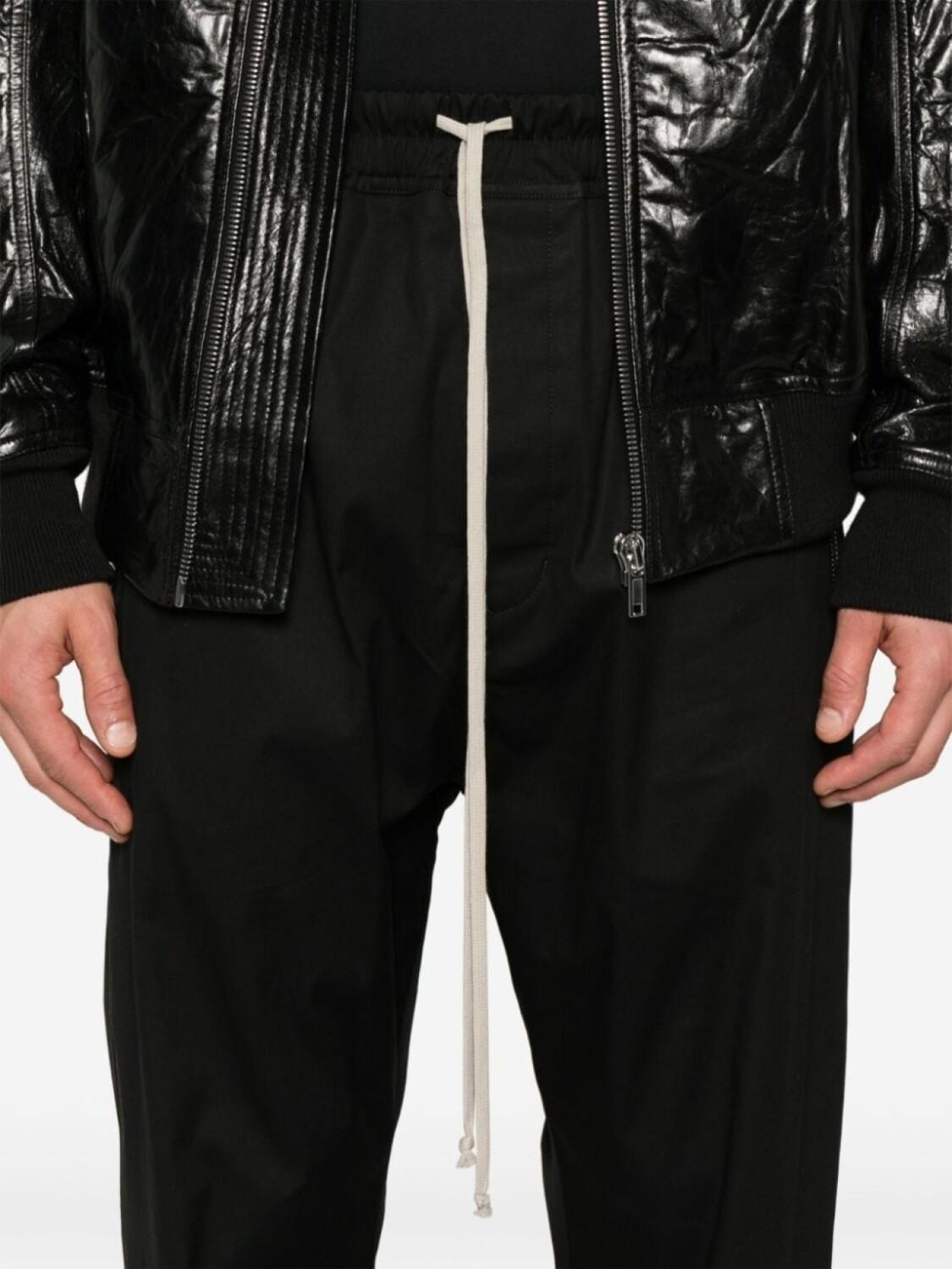 Подробнее о товаре: • черный • смесовый органический хлопок • поплин • эффект потертости • эластичный пояс на шнурке • два кармана на молнии по бокам • два кармана с листочкой сзади • молния на щиколотке • эластичные манжеты • зауженный крой • Ответственный выбор: В составе этого товара есть органический хлопок. Его производитель не использует химические вещества, пестициды и искусственные удобрения и внедряет методы, которые помогают сохранить биоразнообразие, улучшают качество почвы и сокращают потребление воды.