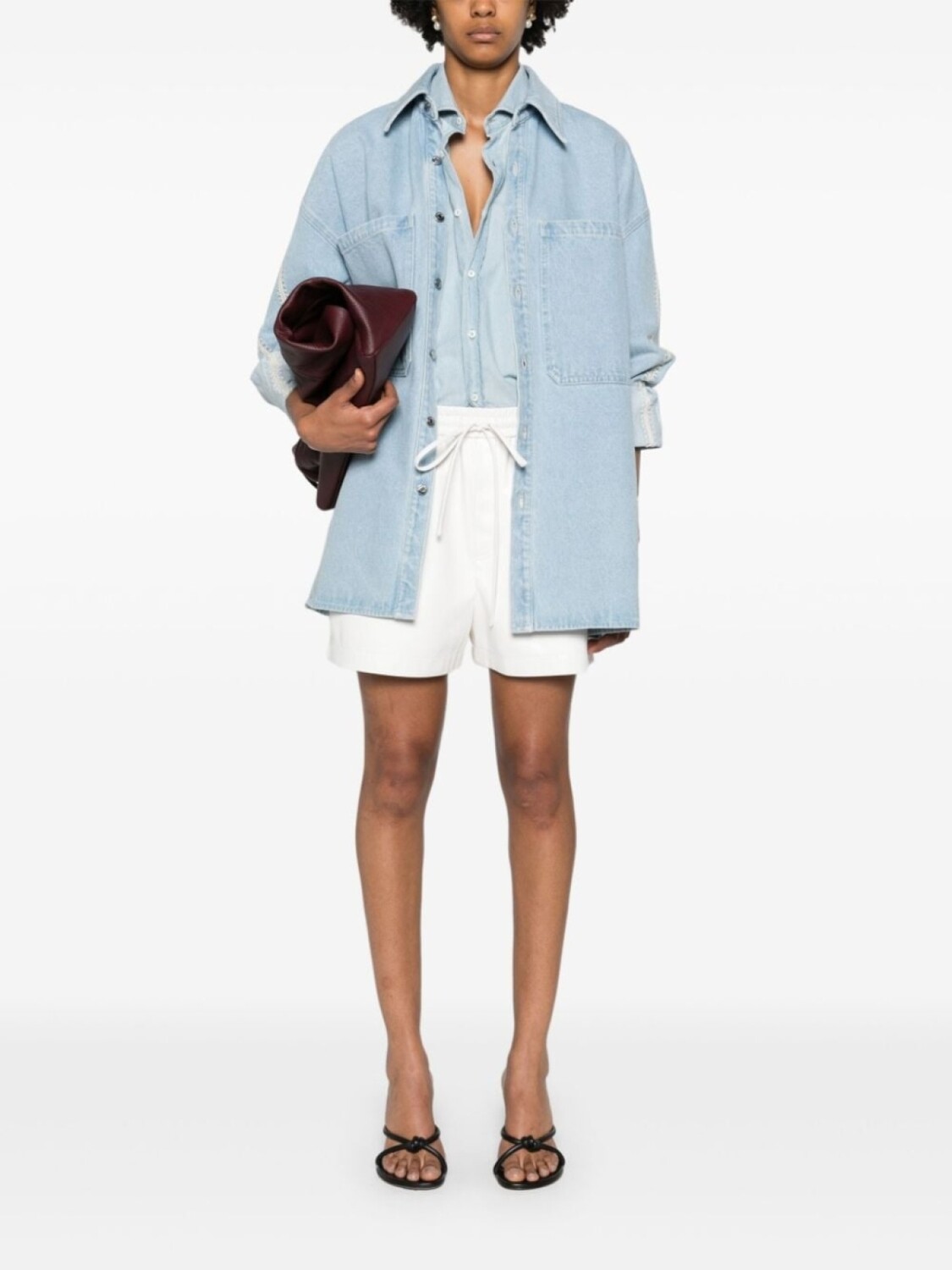 Nanushka джинсовая куртка-рубашка с ажурной отделкой, синий 74 631₽