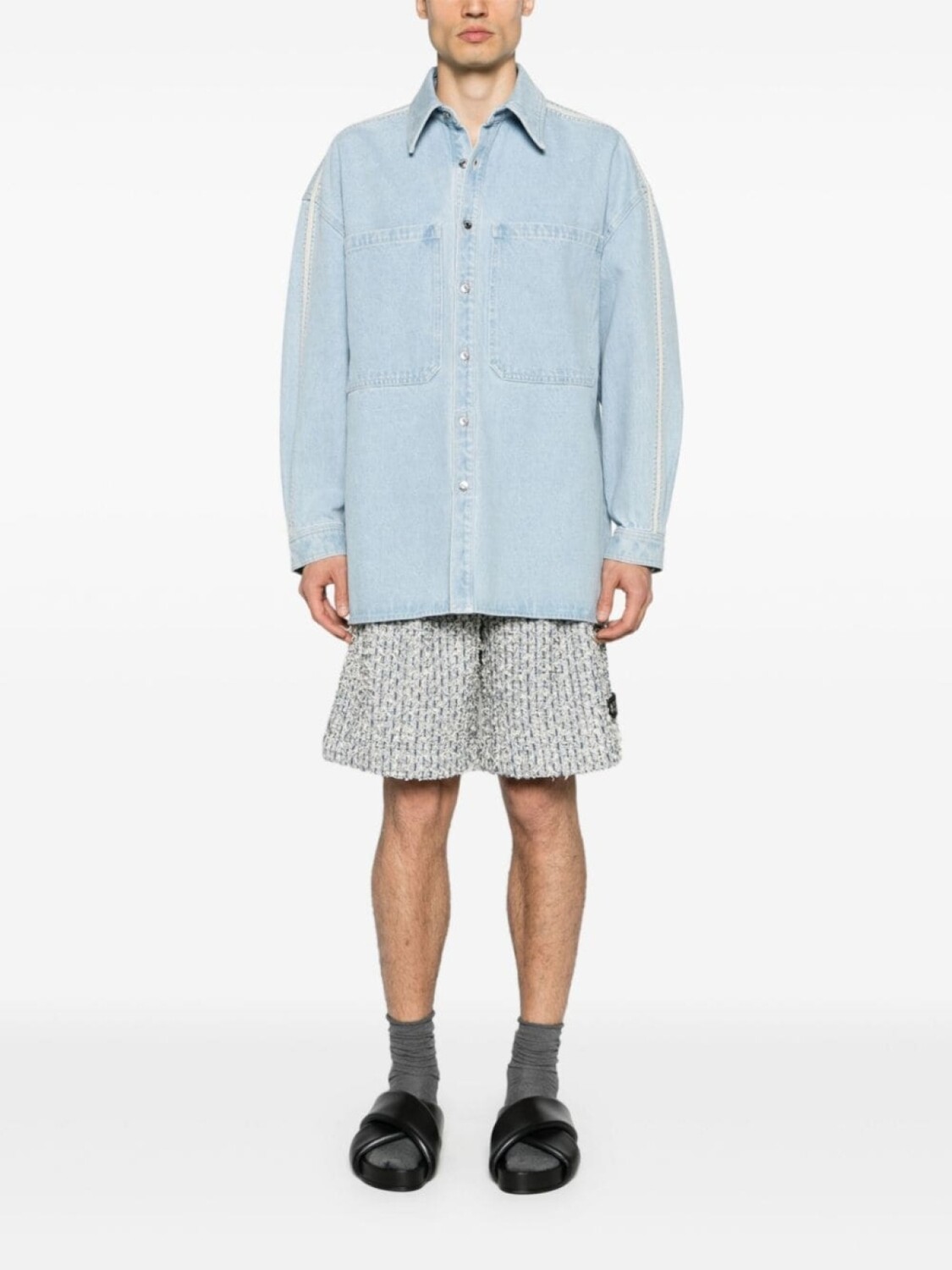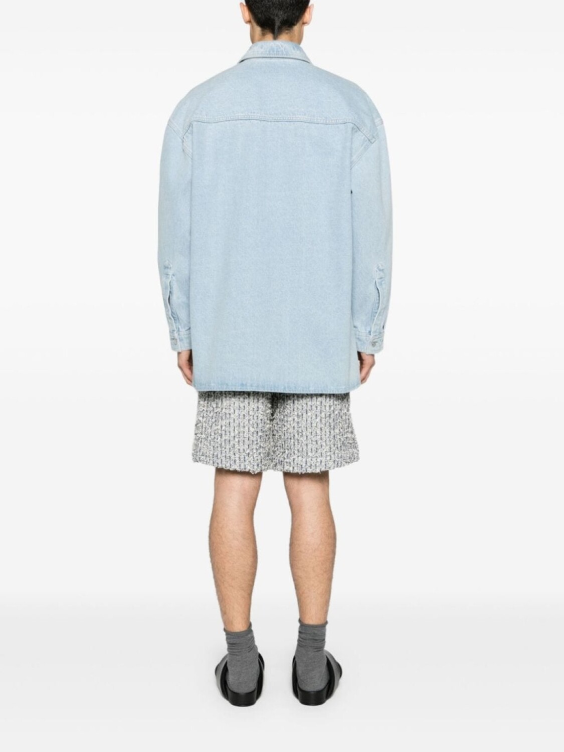 Индиго, деним, эффект кислотной стирки, отделка в технике кроше, прямой воротник, застежка на пуговицах спереди, длинные рукава, манжеты на пуговицах, прямой подол, два накладных кармана на груди, Это унисекс-модель. Обратите внимание, что для нее используется мужская размерная сетка., Мы сотрудничали с Good On You — независимым агентством, которое оценивает эффективность брендов с точки зрения их влияния на планету, людей и животных. Рейтинг по многим критериям был упрощен до пяти баллов. Чтобы попасть в категорию ответственных, крупным брендам нужно получить как минимум 4 балла из 5 («Хорошо»), а небольшим маркам — как минимум 3 из 5 («Достойное начало»)., Это товар из коллекции бренда, который появился на FARFETCH, получив оценку 3 из 5 («Достойное начало») от Good on You. Обратите внимание, что этот рейтинг — собственная оценка бренда и это не гарантирует, что данный продукт изготовлен из экологически чистых материалов., Узнать больше о том, какие товары получают отметку «Ответственный выбор», можно здесь.