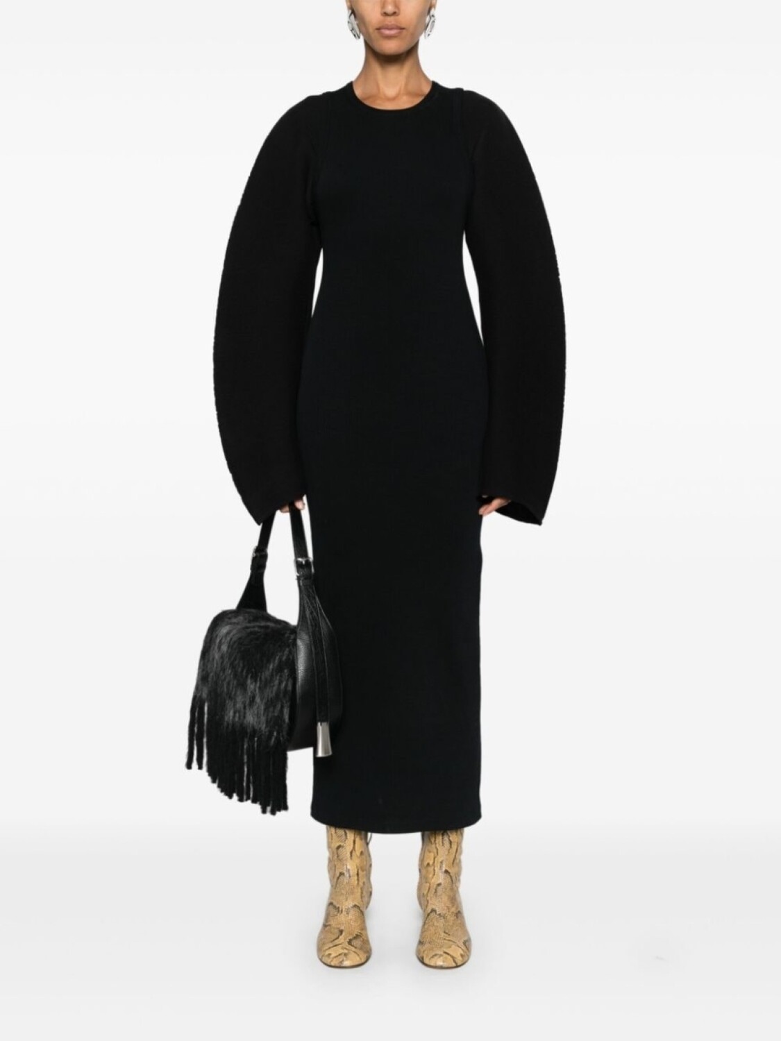 Nanushka платье миди с объемными рукавами, черный 56 381₽