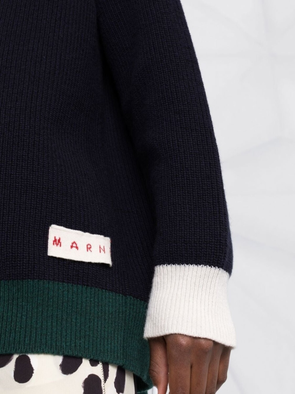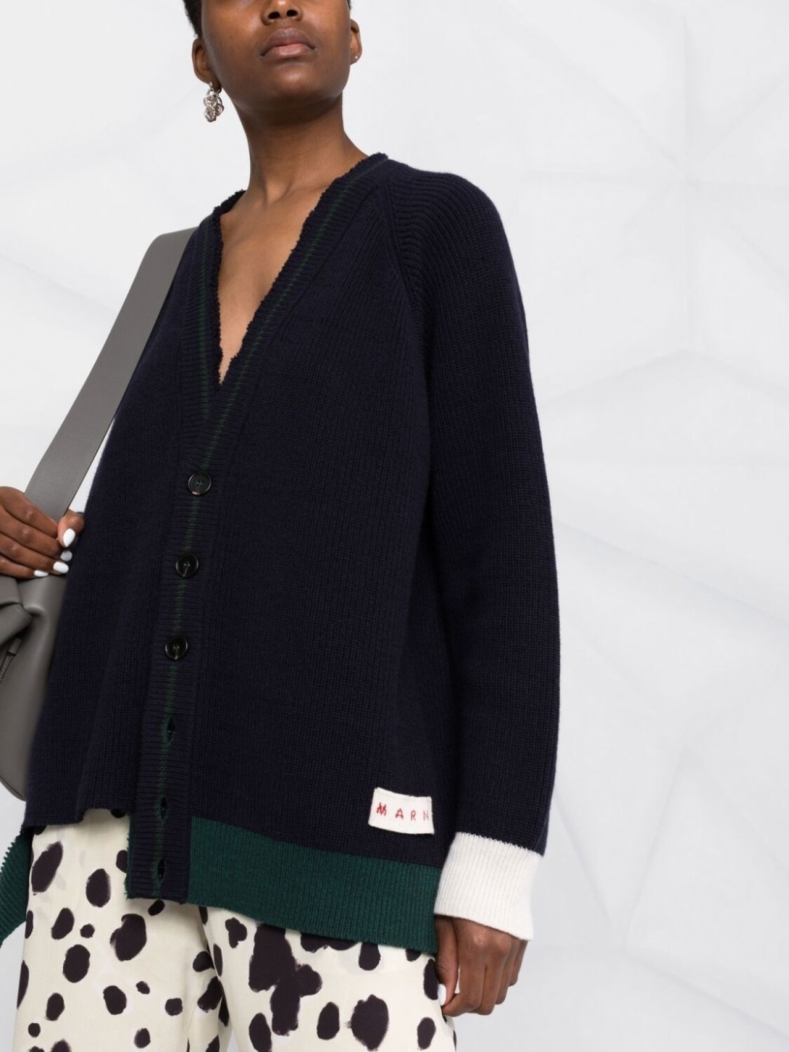 Marni кардиган в рубчик с V-образным вырезом, синий