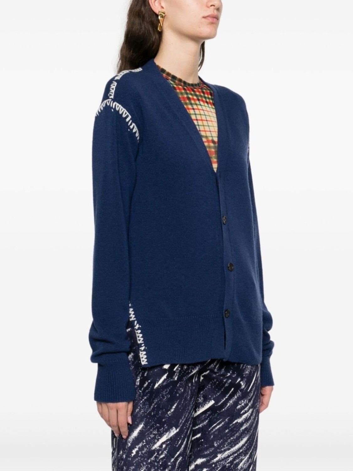 Marni кардиган с декоративной строчкой, синий