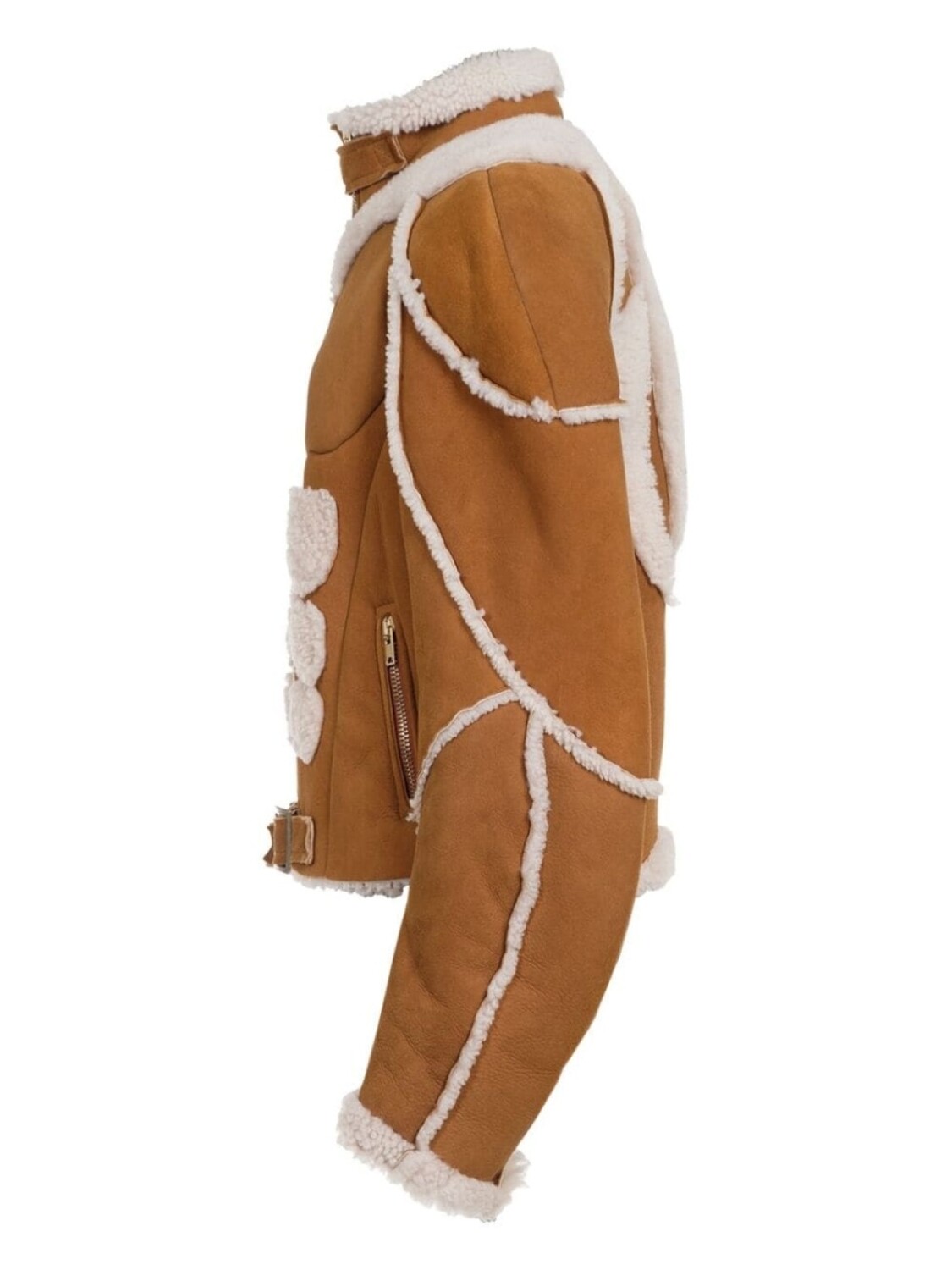 Верблюжья коричневая отделка из овчины застежка-молния спереди высокий ворот длинные рукава застежка-молния спереди карманы пояс на подоле