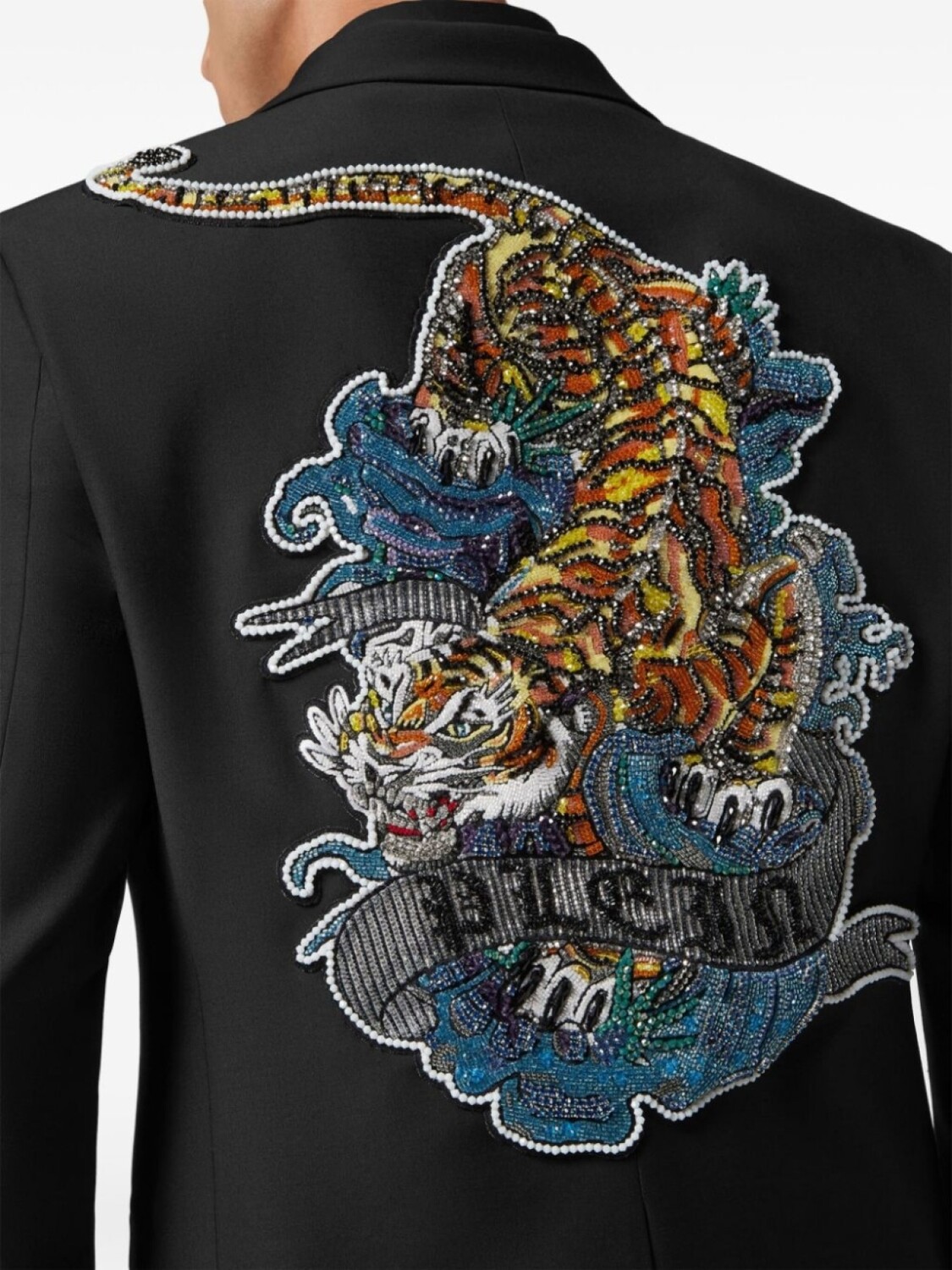 Philipp Plein пиджак с заостренными лацканами и бисером, черный
