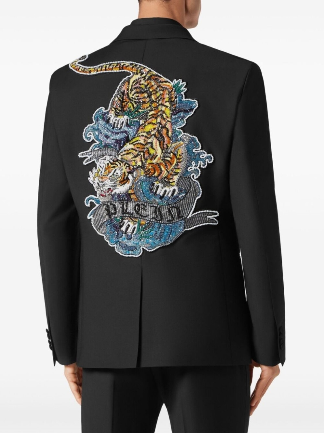 Philipp Plein пиджак с заостренными лацканами и бисером, черный 102 722₽