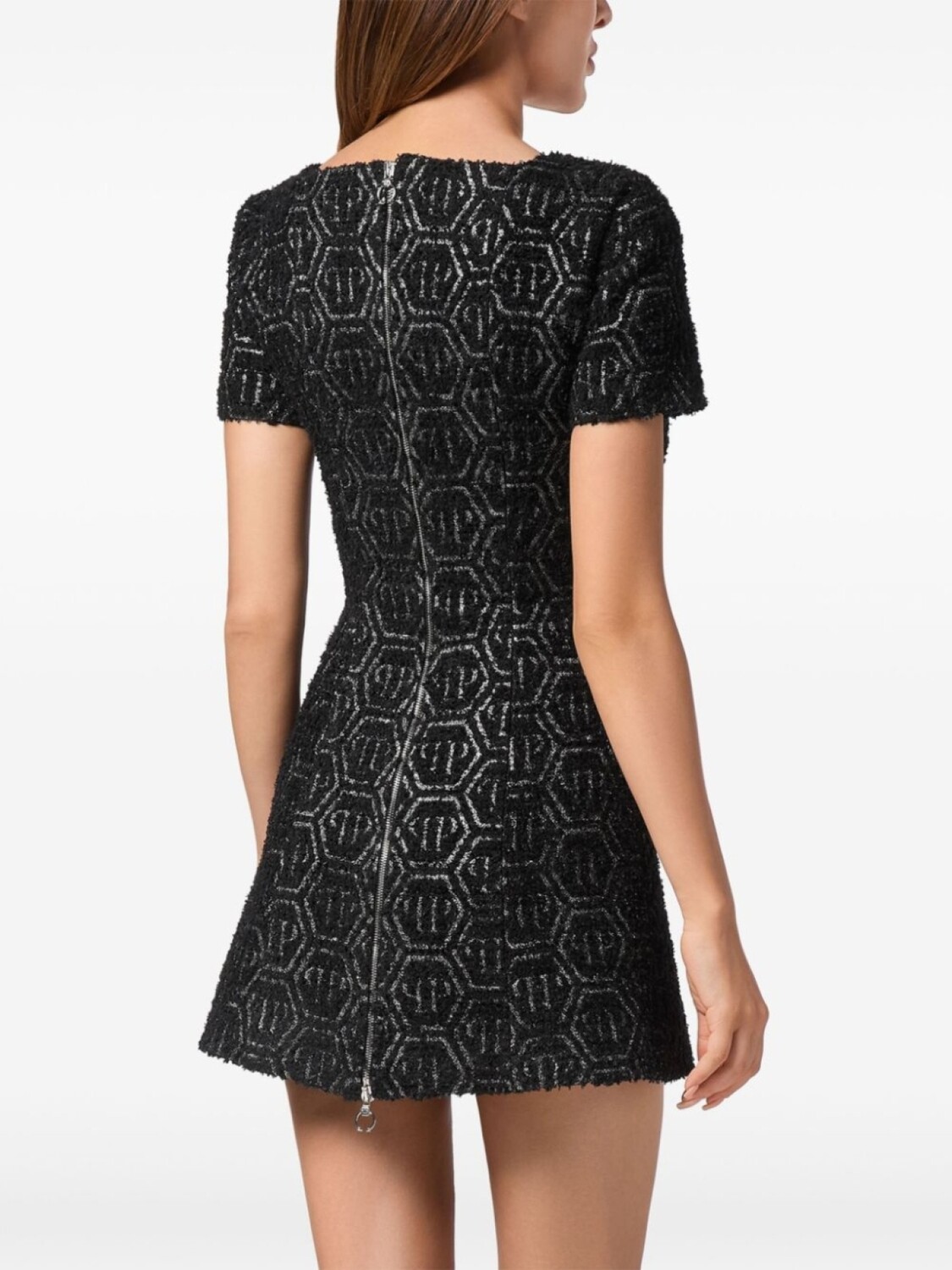 Philipp Plein платье из твида с монограммой, черный