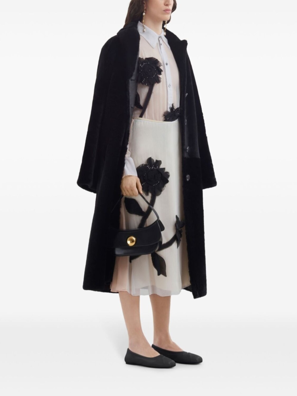 Marni однобортная шуба из искусственного меха, черный