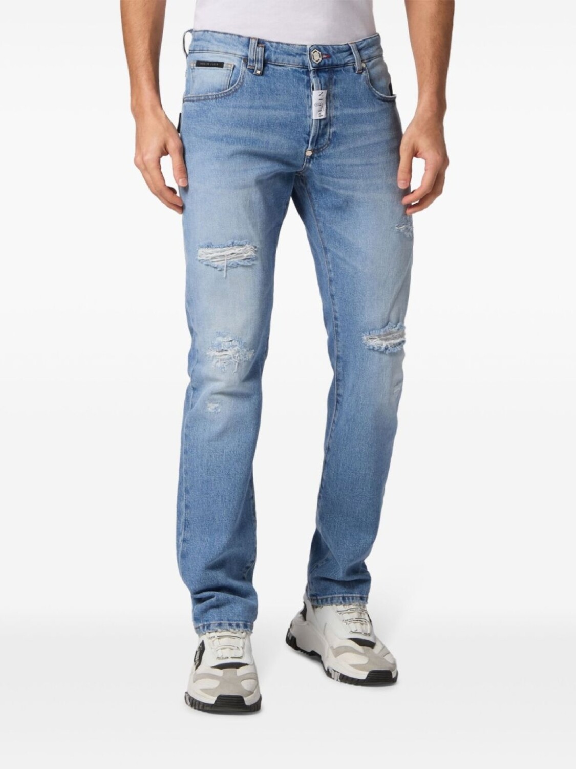 Philipp Plein прямые джинсы с эффектом потертости, синий