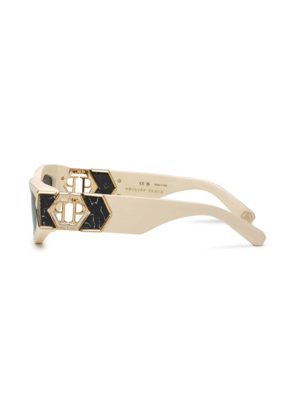 Кремовый/черный/золотой ацетат, логотип на пластине, детализированный мраморный эффект, гравированный логотип на заушниках, серые тонированные линзы