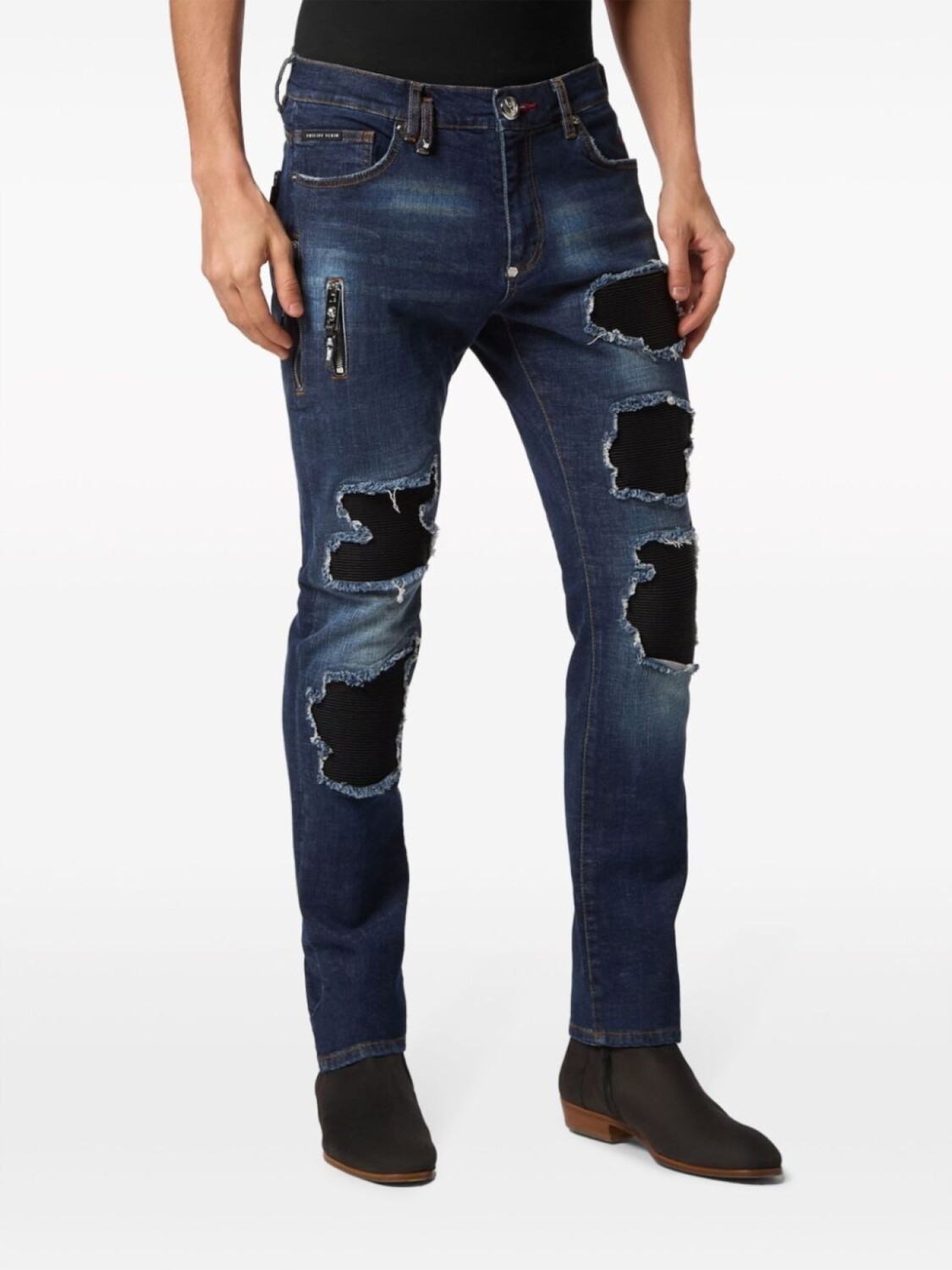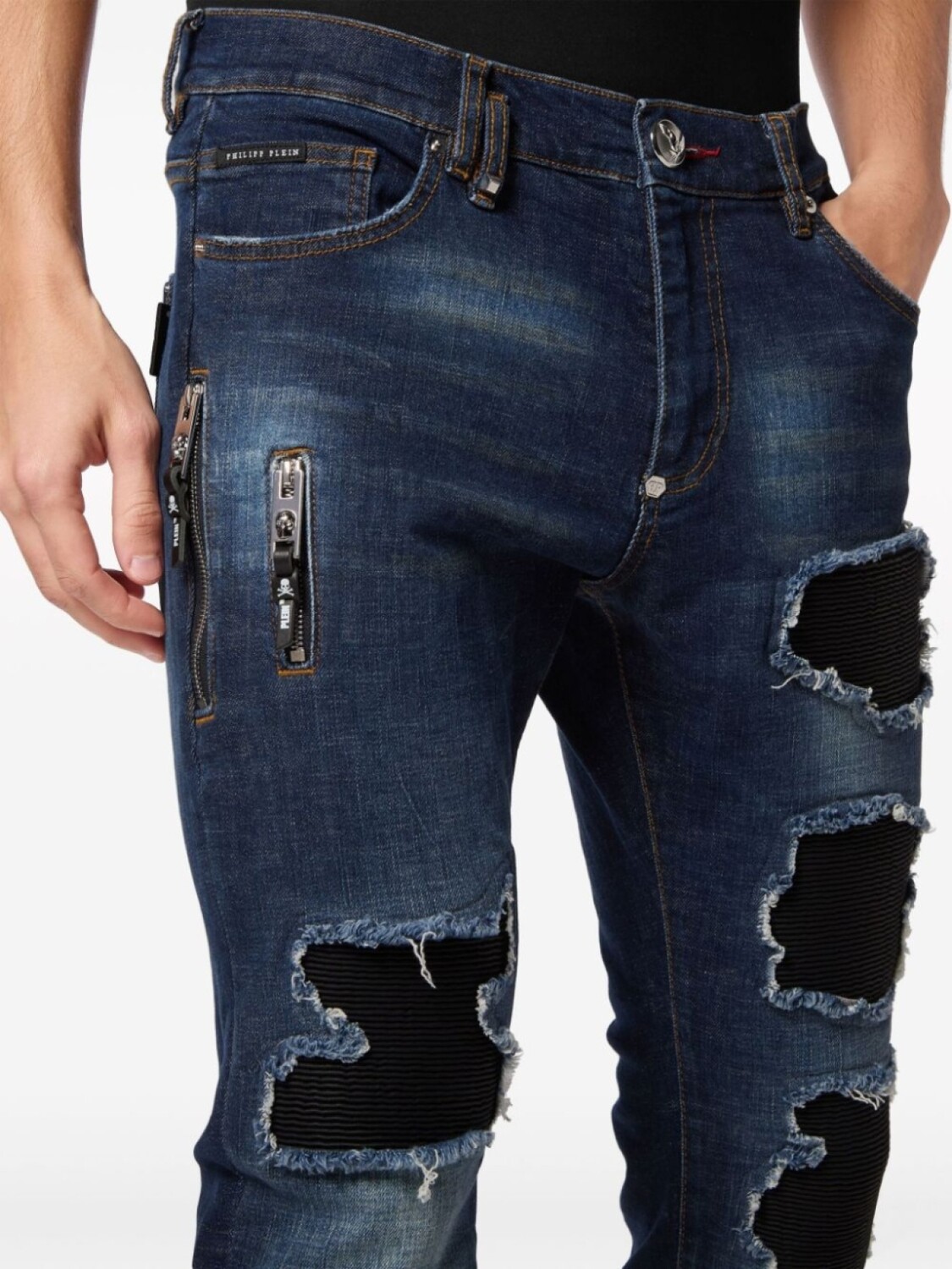 Philipp Plein узкие джинсы с эффектом потертости, синий