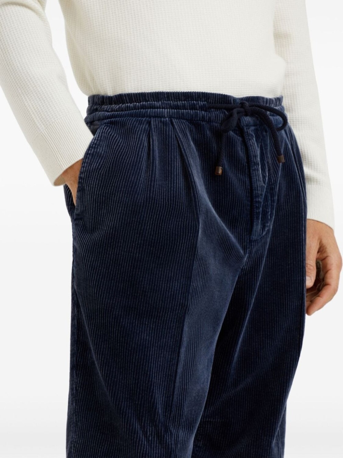 Brunello Cucinelli вельветовые брюки с завязками, синий