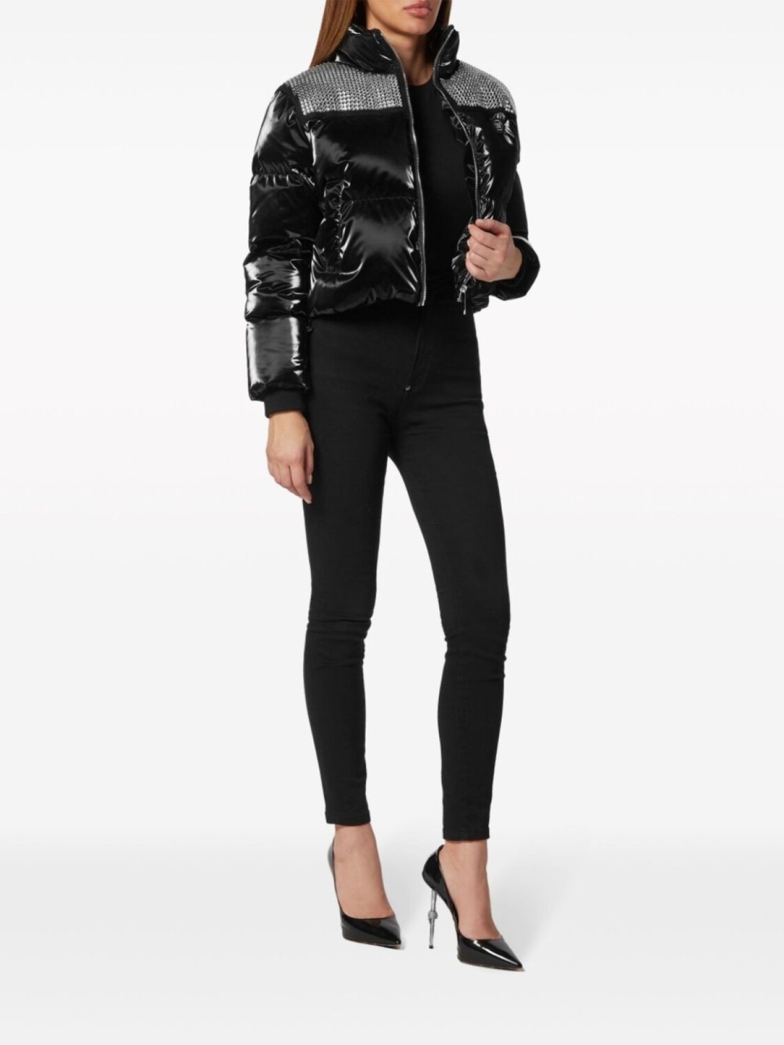 Philipp Plein укороченный пуховик с кристаллами, черный