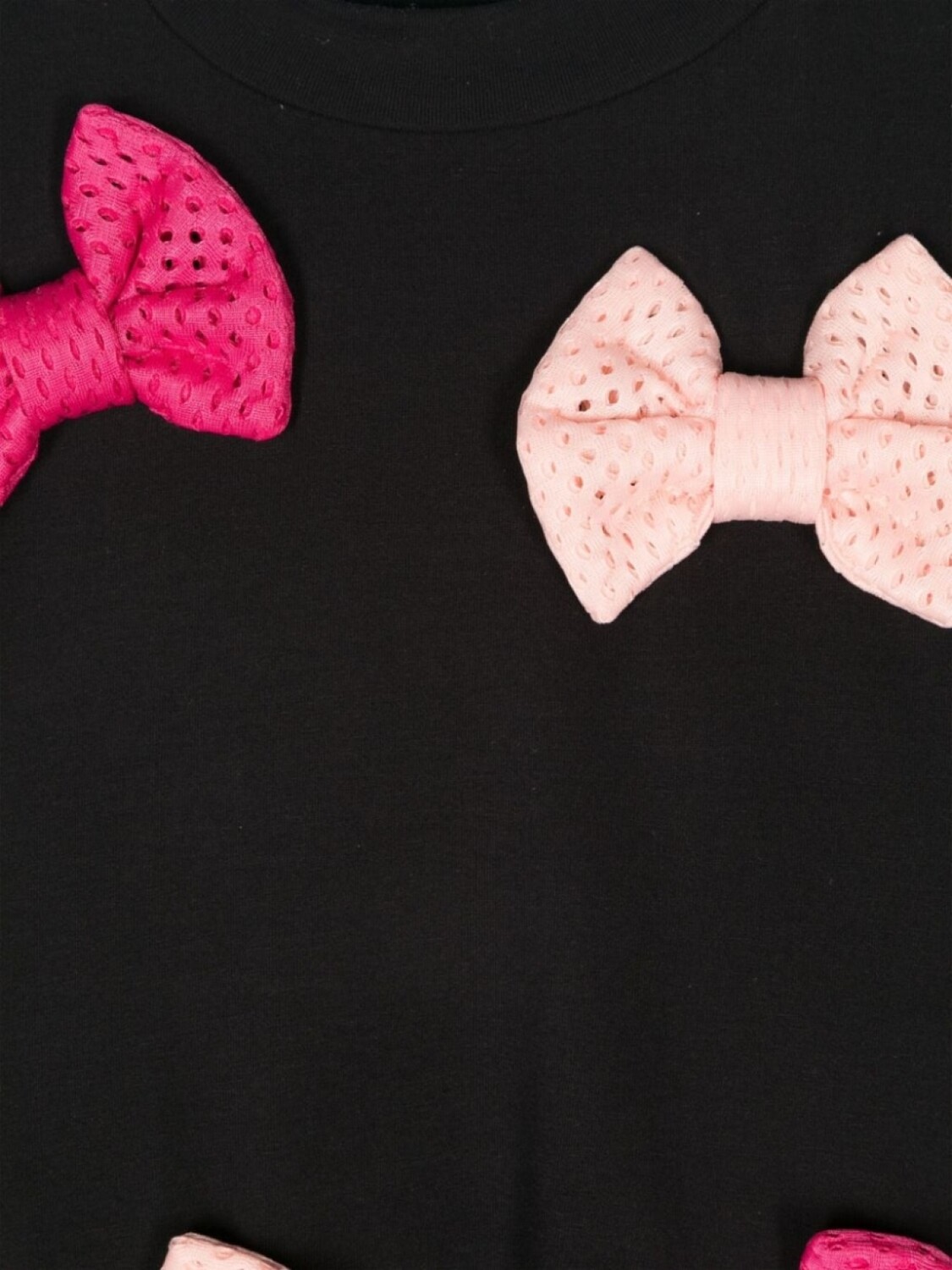 Подробнее о товаре: • черный/розовый • смесовый органический хлопок • материал с флисовой текстурой • круглый вырез • длинные рукава • бант • расклешенный подол • Ответственный выбор: В составе этого товара есть органический хлопок. Его производитель не использует химические вещества, пестициды и искусственные удобрения и внедряет методы, которые помогают сохранить биоразнообразие, улучшают качество почвы и сокращают потребление воды.