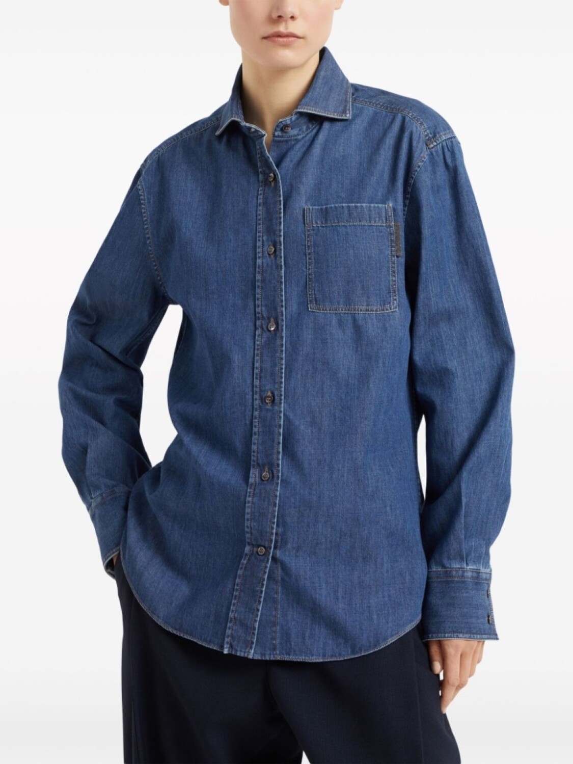 Brunello Cucinelli джинсовая рубашка с декором Monili, синий