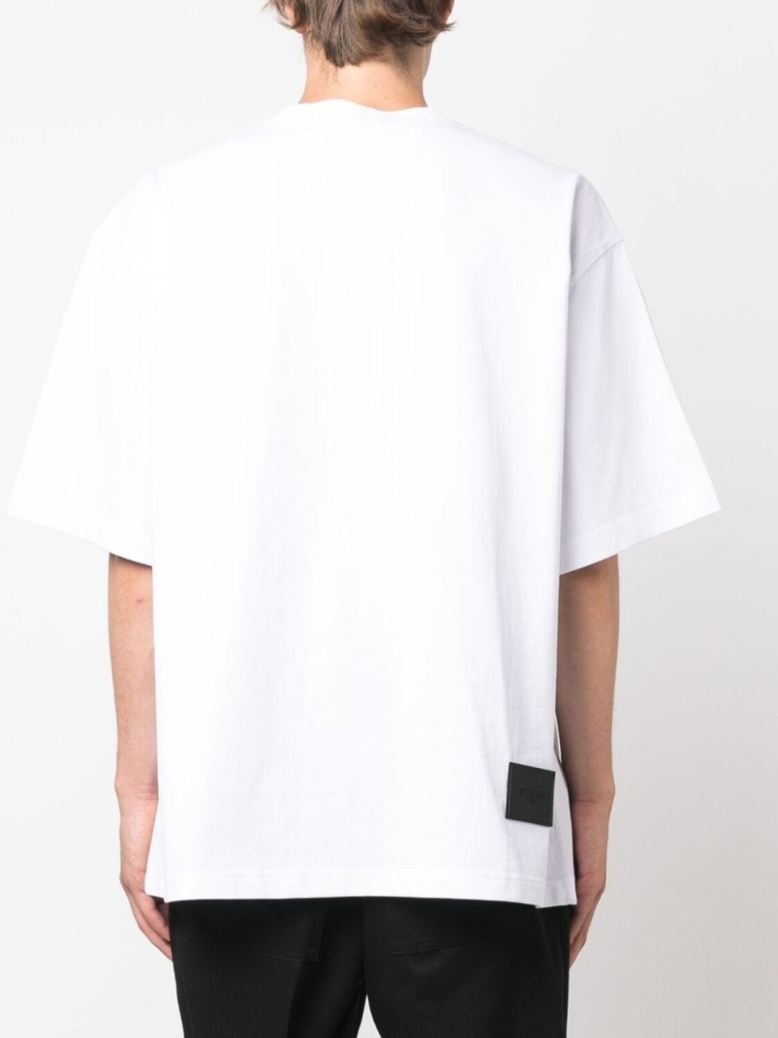 Кремовый, хлопок, логотип спереди, нашивка с логотипом сзади, круглый вырез, короткие рукава и прямой подол. Это унисекс-модель. Обратите внимание, что для нее используется мужская размерная сетка.