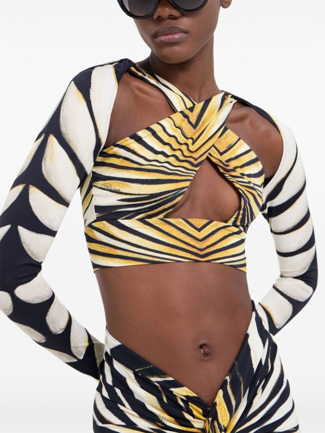 Roberto Cavalli укороченный топ с принтом Ray Of Gold, нейтральный цвет