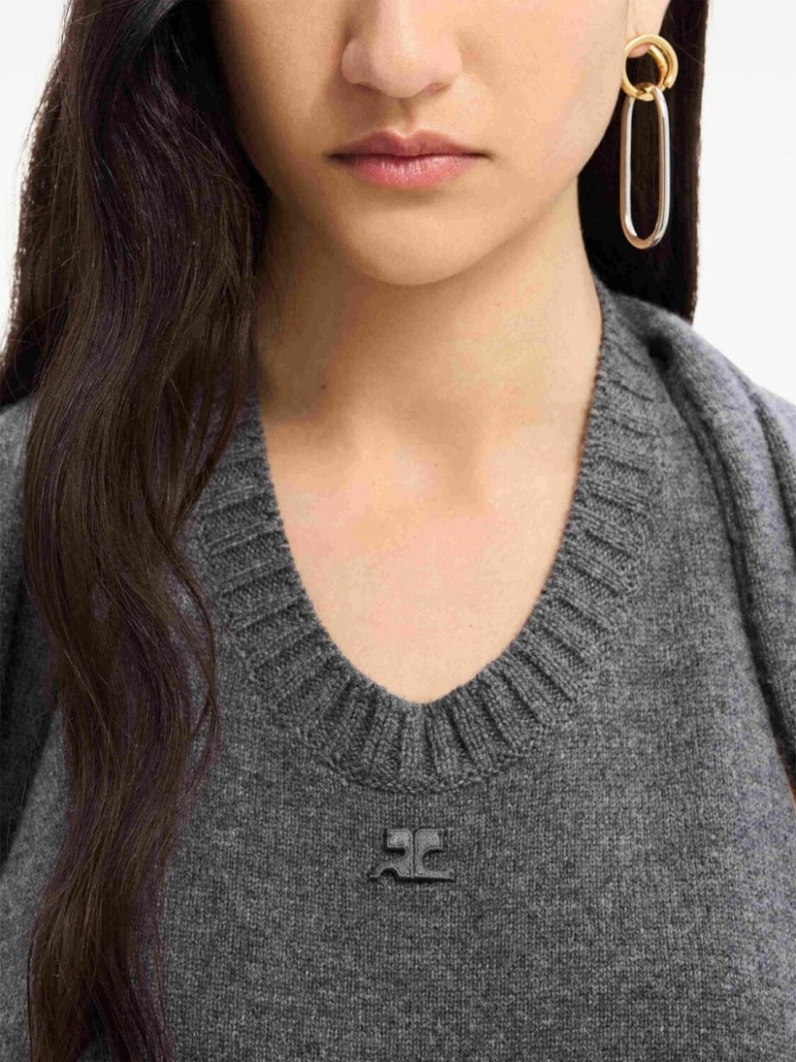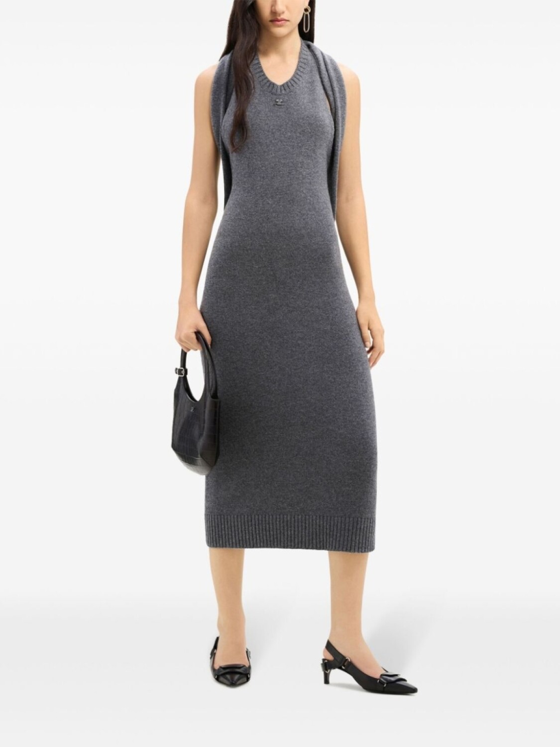 Courrèges драпированное платье миди с открытыми плечами, серый