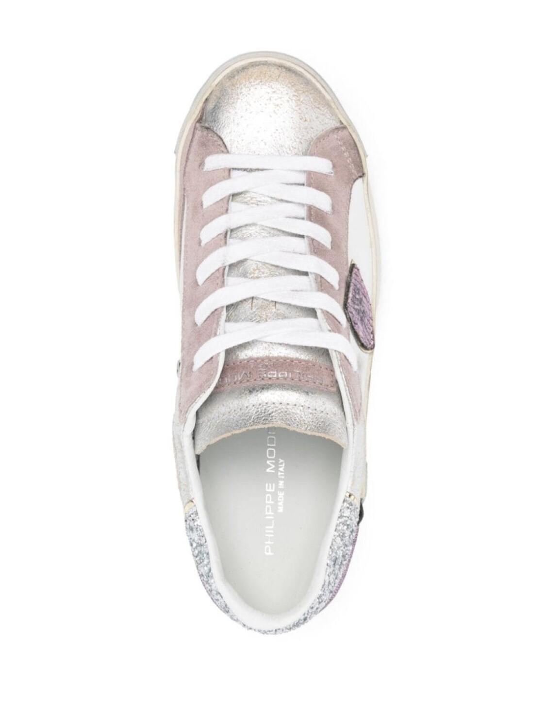 Подробнее о товаре: • белый/фиолетовый/серебристый • телячья кожа • гладкая текстура кожи • эффект металлик • эффект потертости • дизайн со вставками • деталь с блестками • нашивка с логотипом на язычке • нашивка с логотипом сбоку • логотип на пятке • отделка металлическими люверсами • отделка металлическими люверсами • шнуровка спереди • закругленный носок • кожаная стелька с логотипом • плоская резиновая подошва