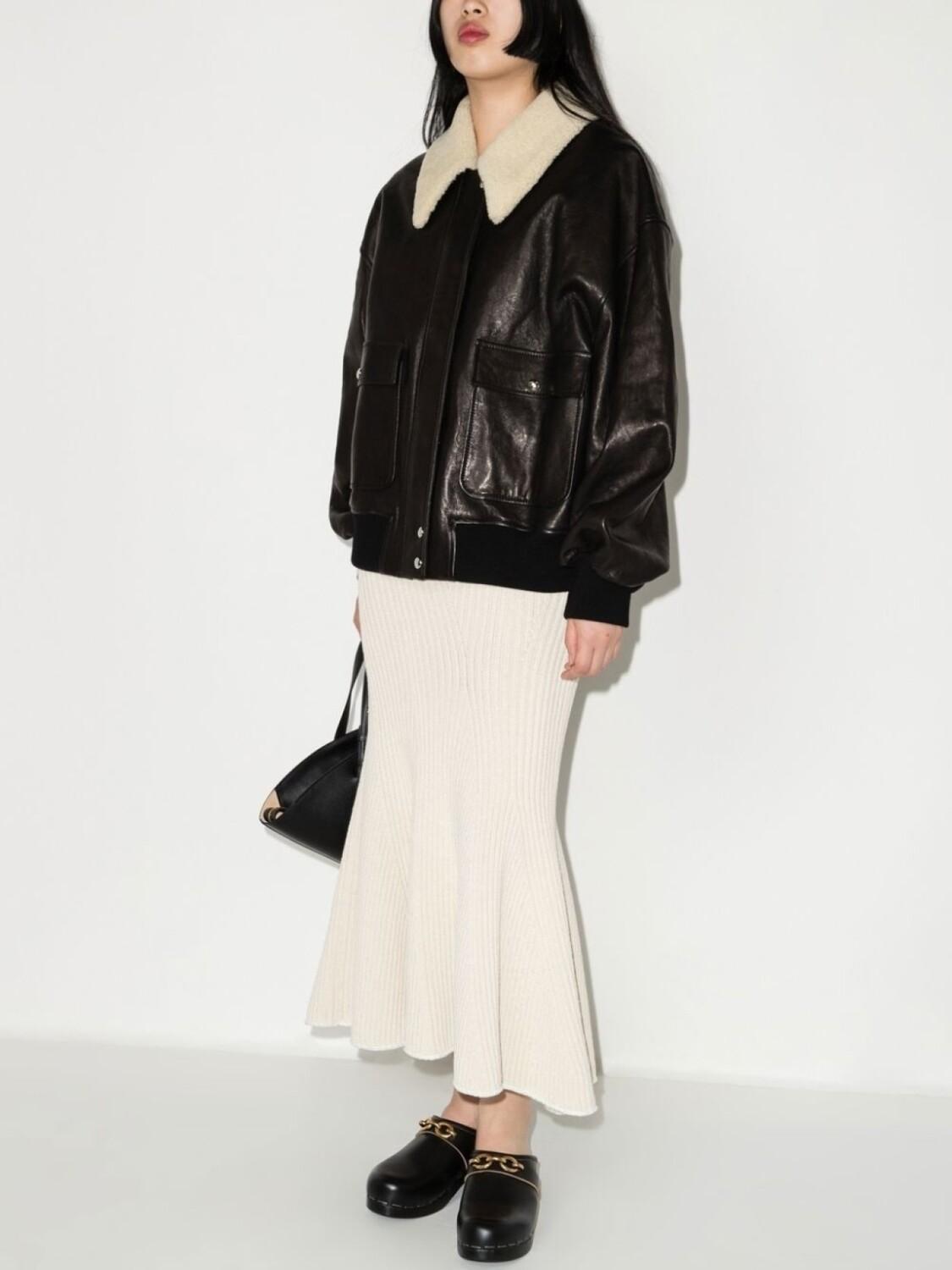 KHAITE джинсовая куртка с воротником из овчины, черный 493 740₽