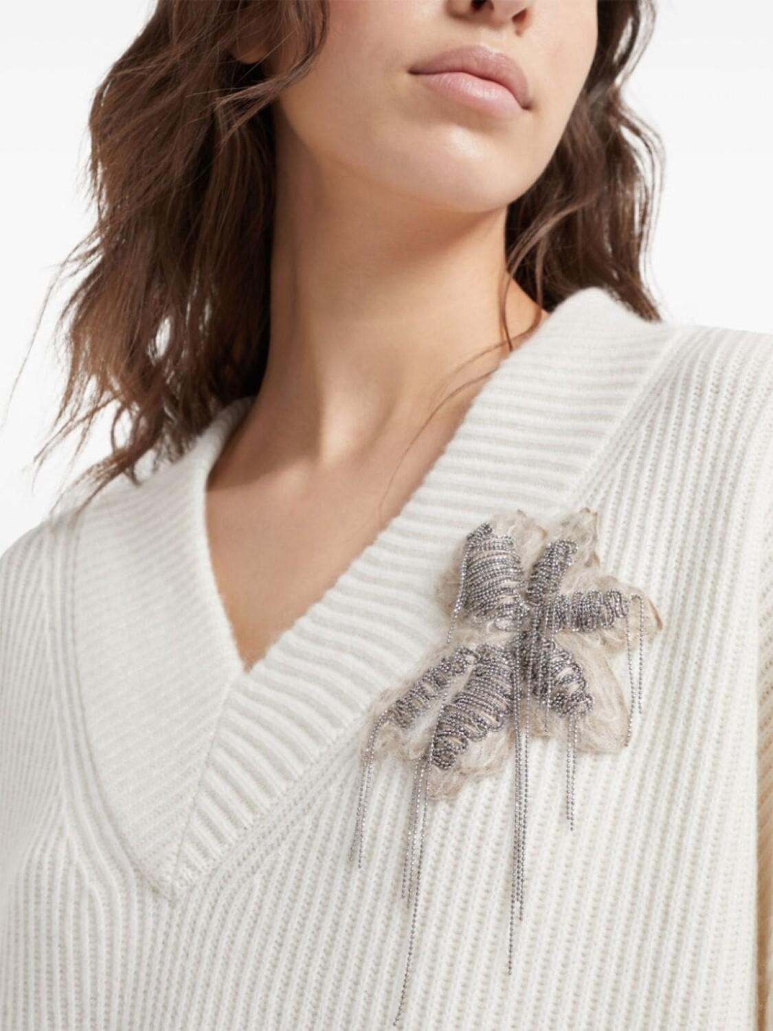 Brunello Cucinelli кашемировое платье с бисером, белый