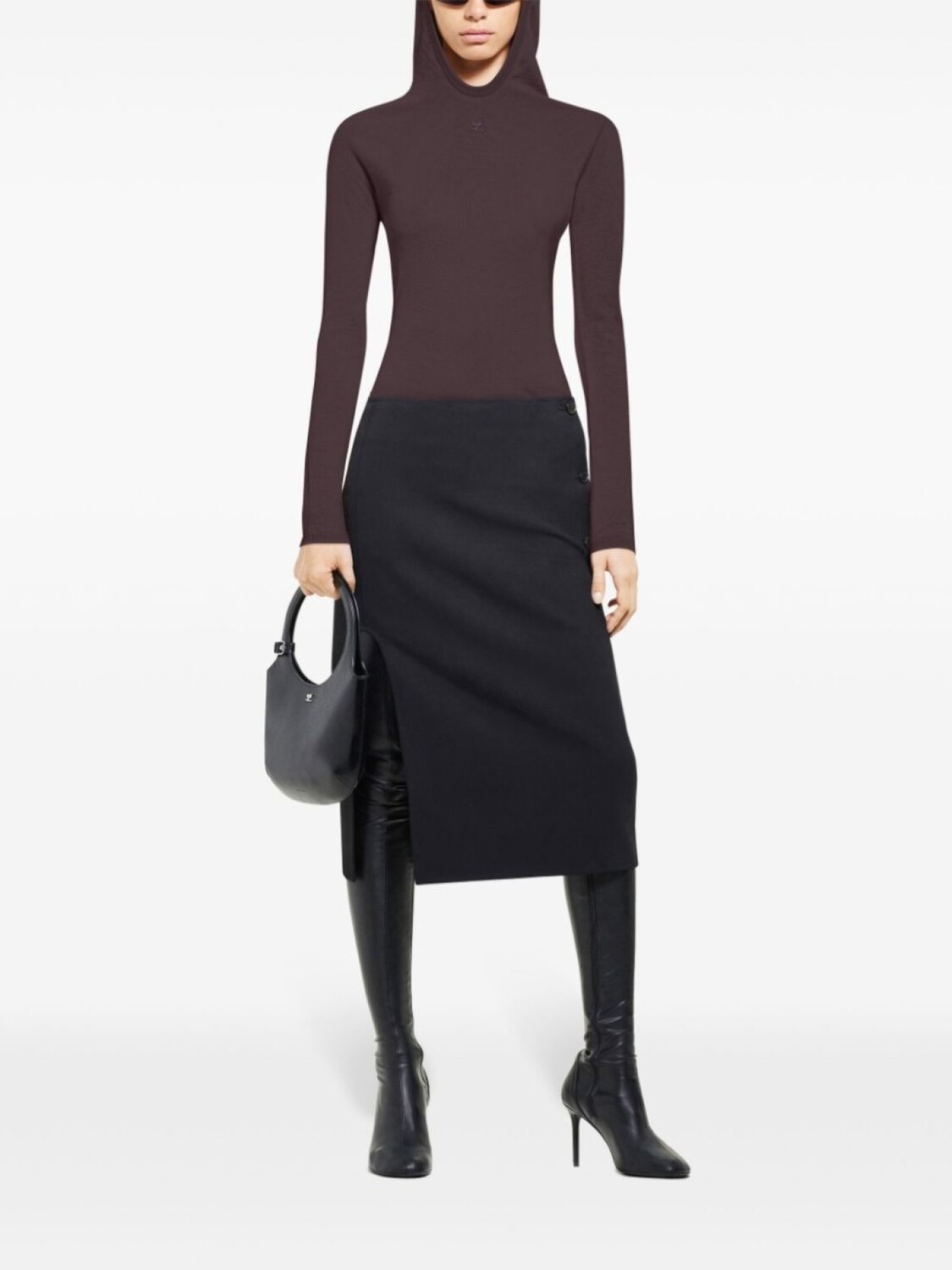 Courrèges трикотажный топ с капюшоном, коричневый