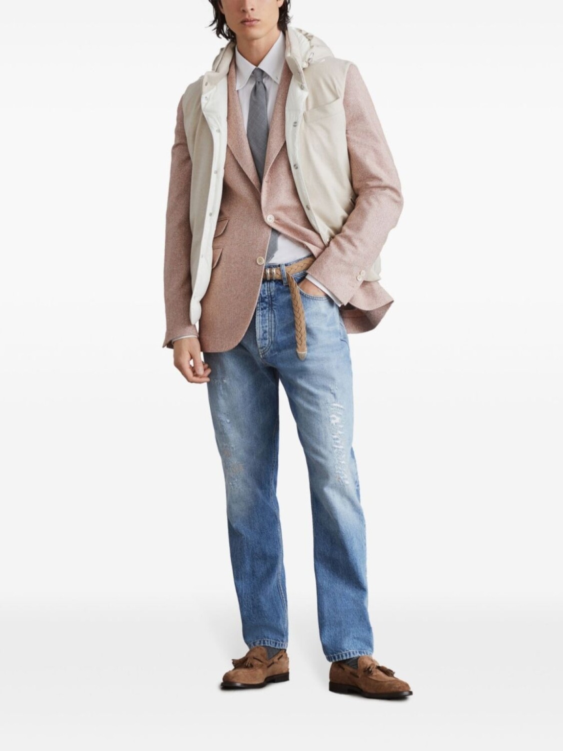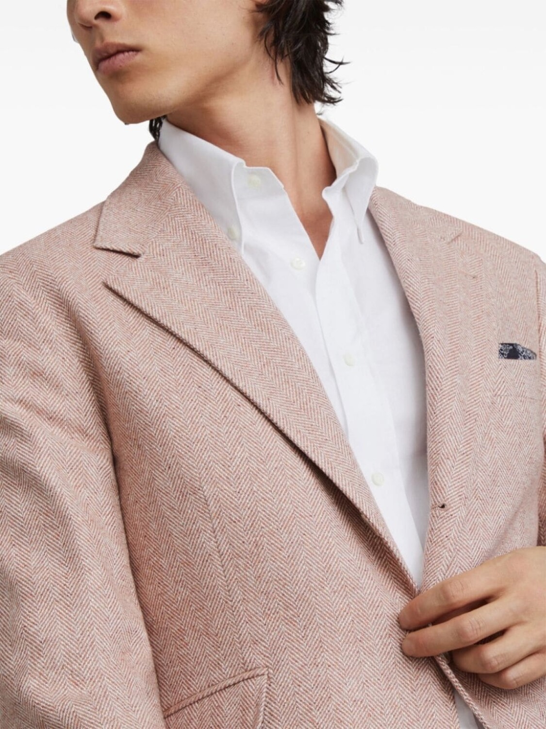 Brunello Cucinelli льняной пиджак с узором в елочку, оранжевый