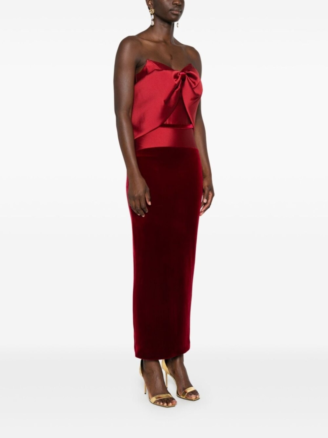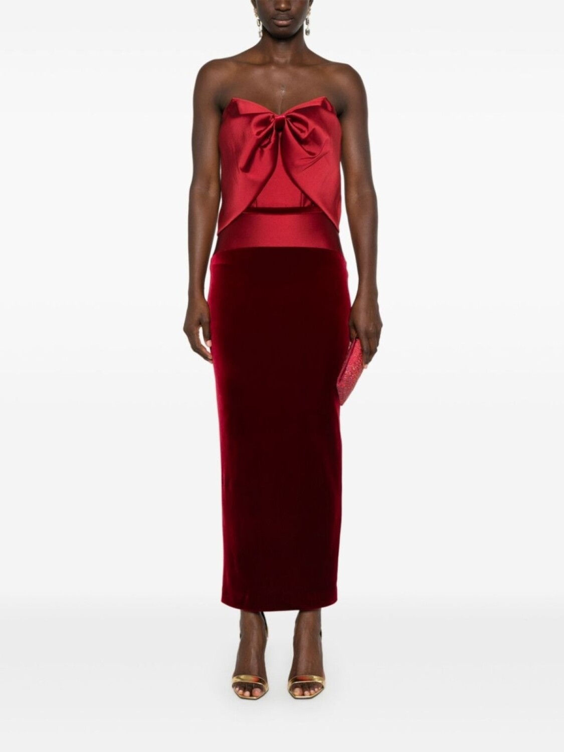 CRISTALLINI платье миди с открытыми плечами, красный