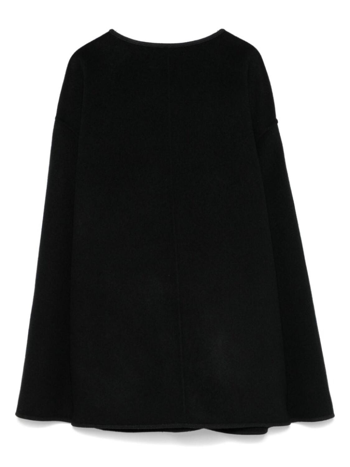 Черный, шерсть, фактурная отделка, застежка тогл, без воротника, длинные рукава, два накладных кармана спереди, прямой подол