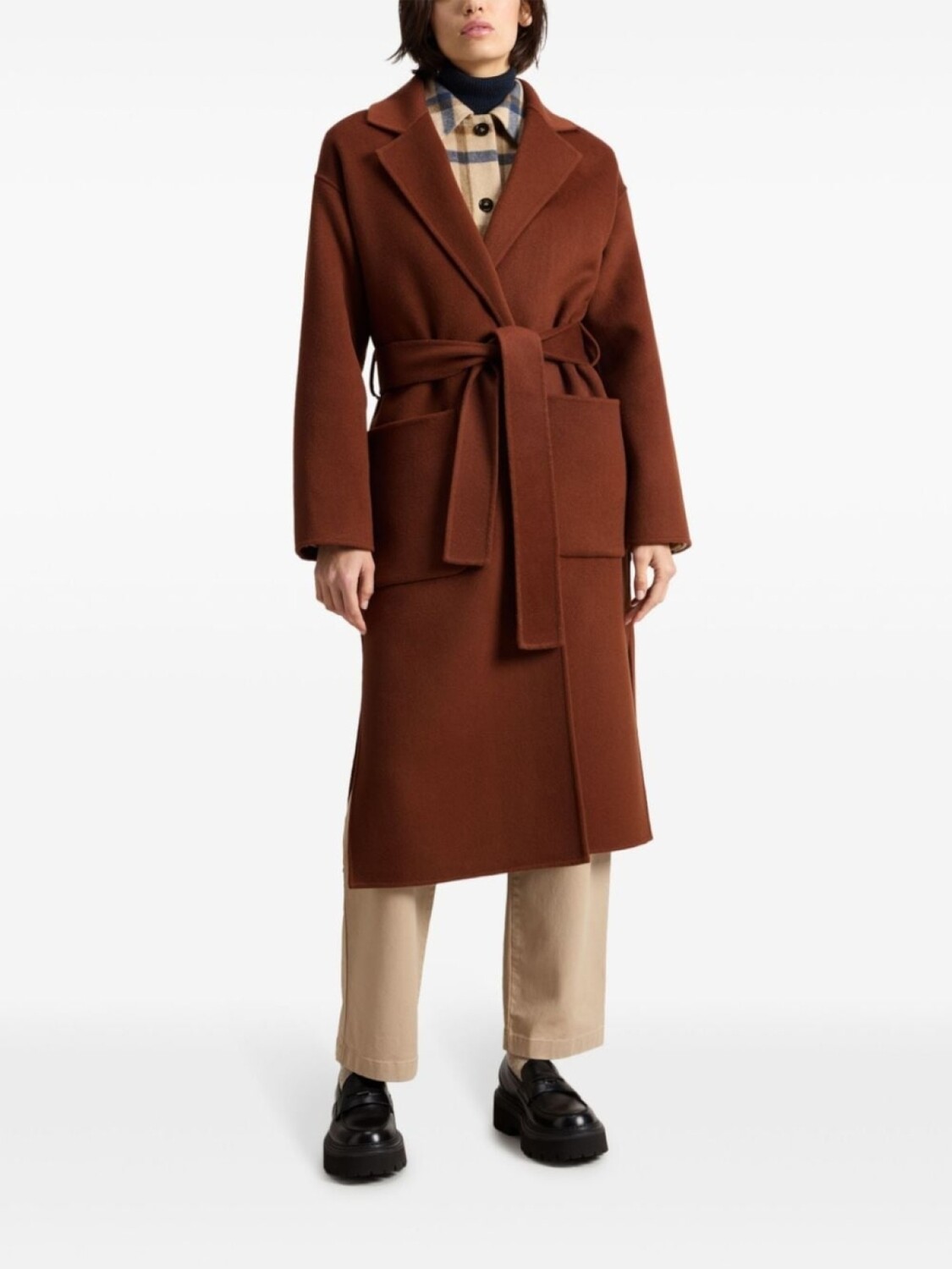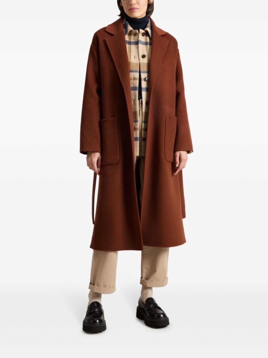 Woolrich шерстяное пальто с поясом, коричневый
