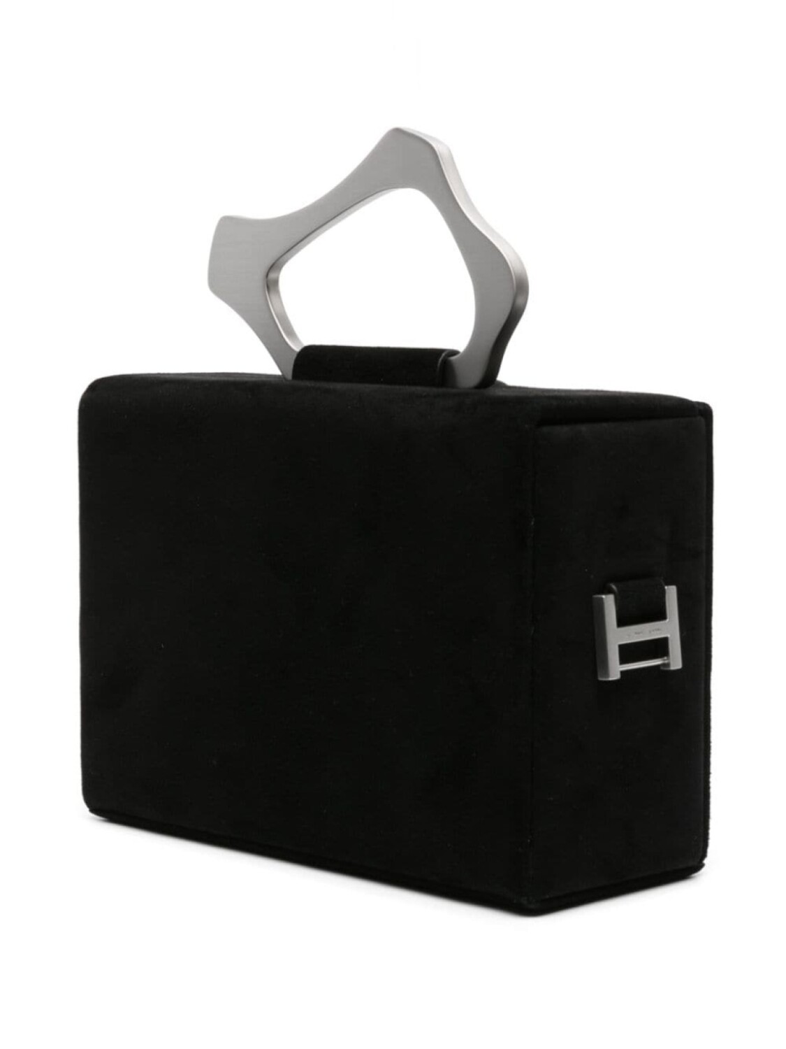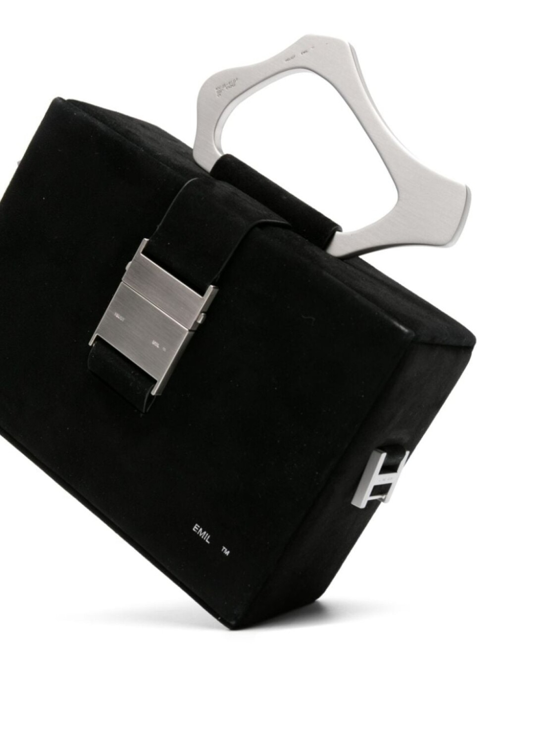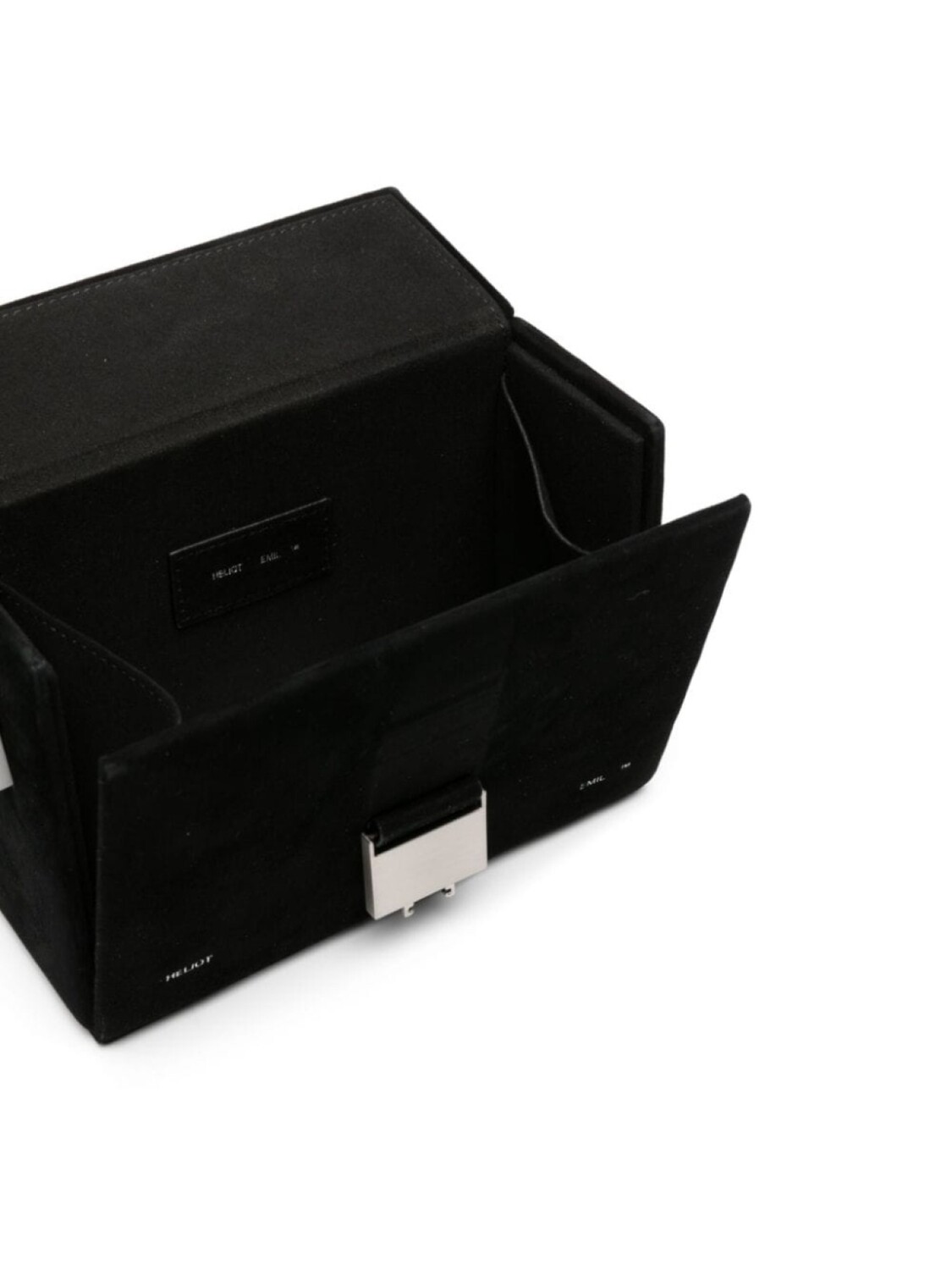 Черный, замша из телячьей кожи, вставки, серебристый металлический логотип, серебристая фурнитура, ремешок с застежкой-защелкой, регулируемый ремень на плечо, скульптурная ручка и цельная подкладка.