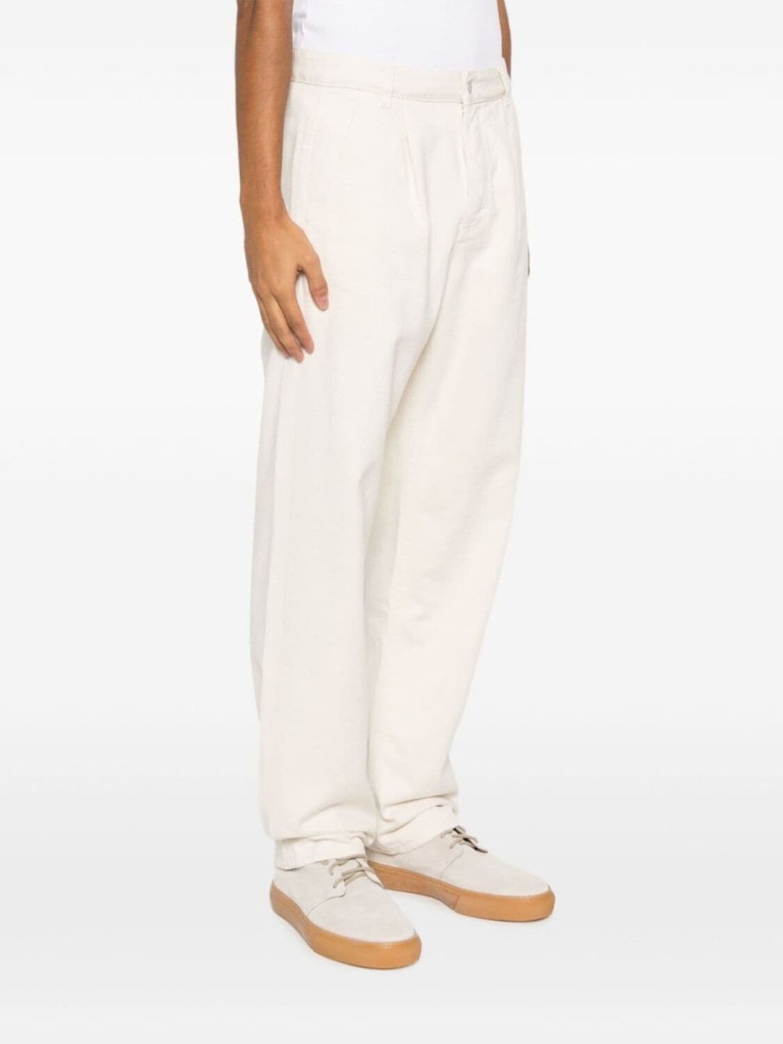 Подробнее о товаре: Экрю, органический хлопок, складки, нашивка с логотипом сзади, завышенная талия, потайная застежка на молнии и пуговицах, петли для ремня, два кармана по бокам, два кармана с листочкой сзади, прямой крой и прямой подол. Узнать больше о том, какие товары получают отметку «Ответственный выбор», можно из материала «Как мы оцениваем экологичность и этичность».