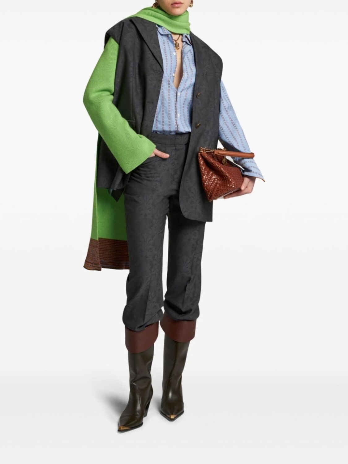 ETRO брюки с цветочным жаккардом, серый