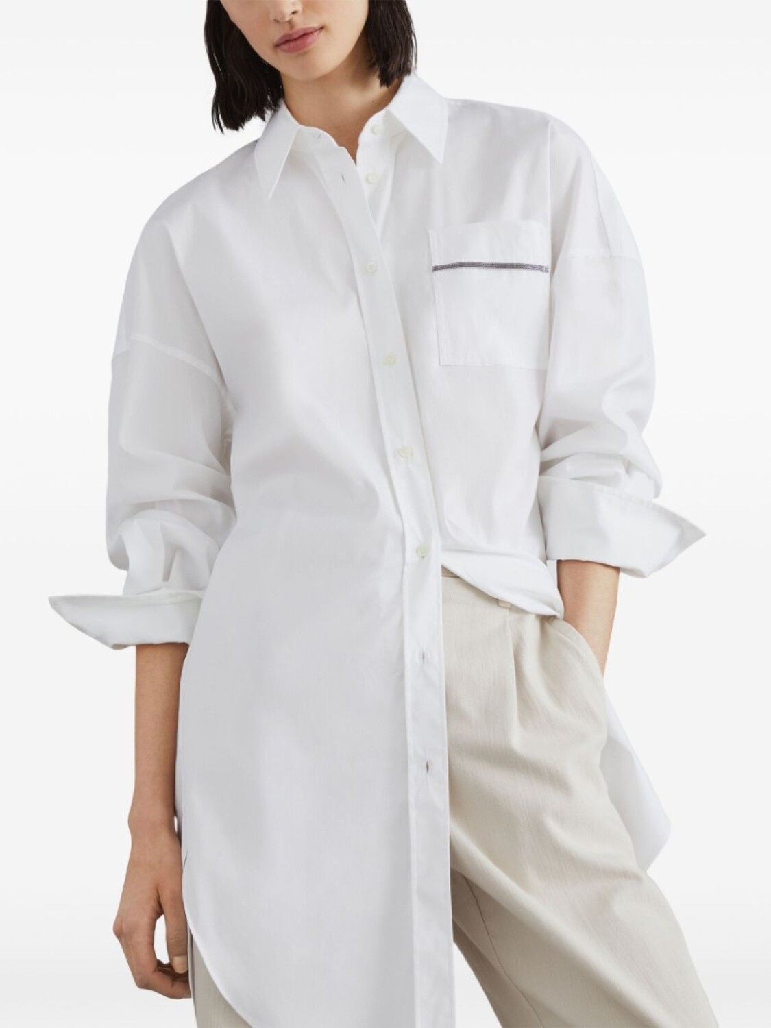 Brunello Cucinelli рубашка с длинными рукавами и декором Monili, белый