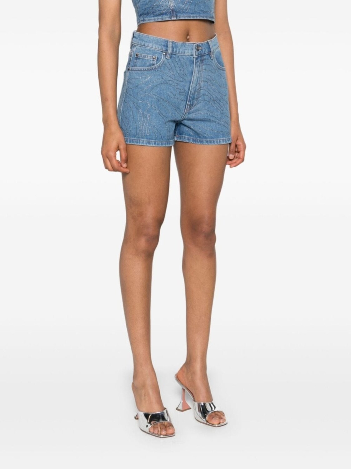 ROTATE BIRGER CHRISTENSEN джинсовые шорты с завышенной талией и стразами, синий