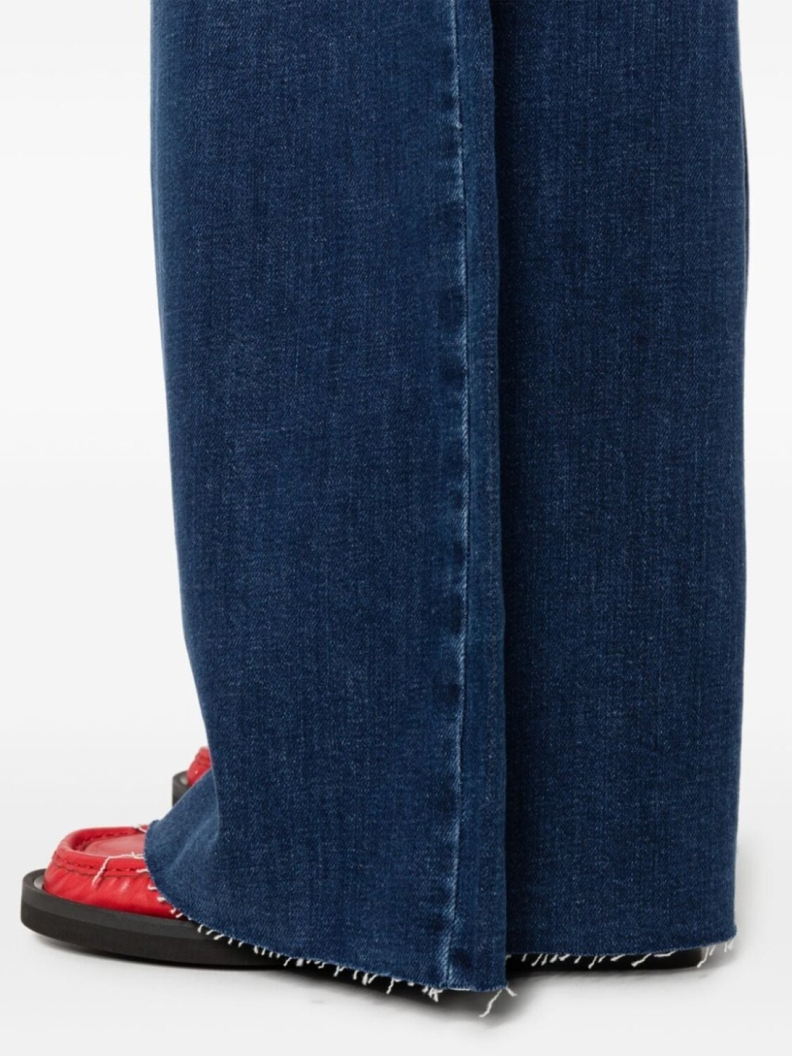 Подробнее о товаре: • индиго • смесовый хлопок • деним • эффект потертости • декоративные складки • контрастная строчка • нашивка с логотипом сзади • вышитый логотип сзади • защипы • свободный крой • завышенная талия • потайная застежка на молнии и пуговицах • петли для ремня • два прорезных кармана по бокам • два диагональных кармана по бокам • два накладных кармана сзади • необработанный подол