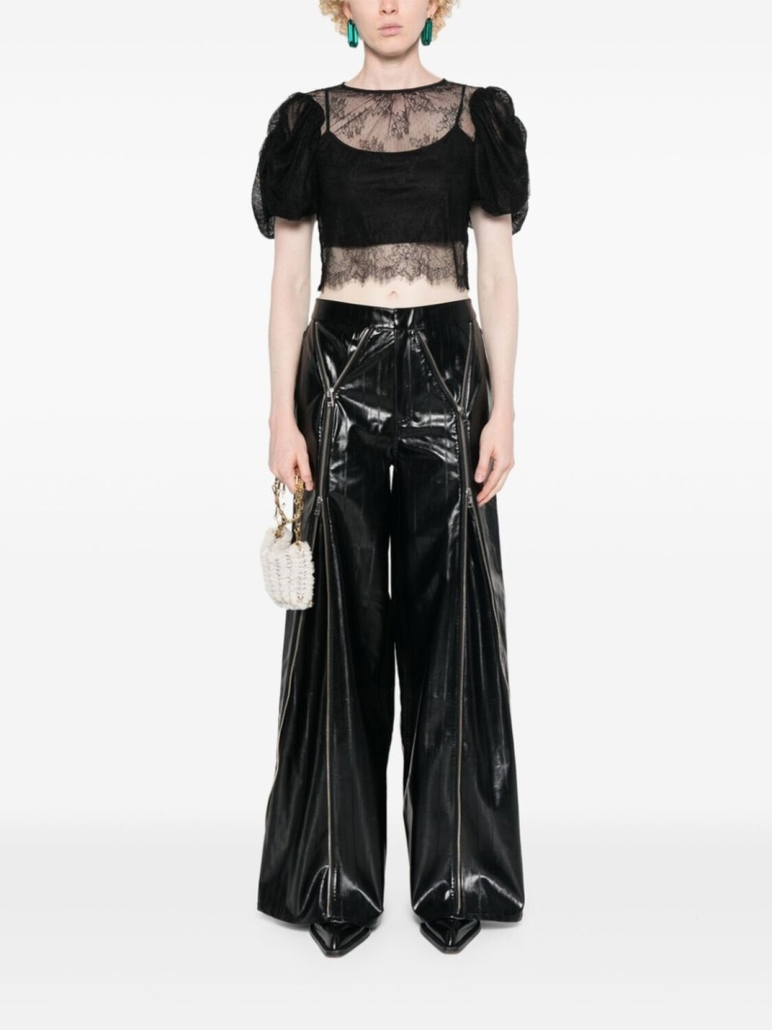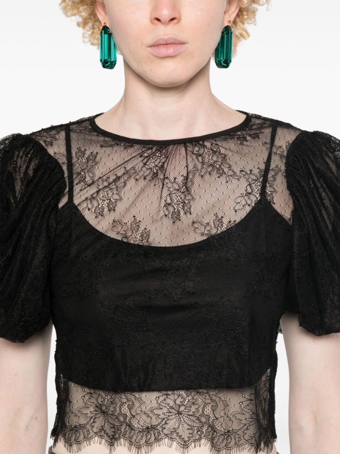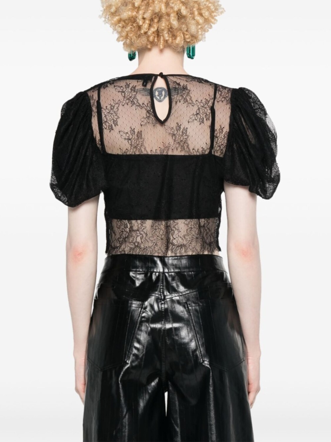 ROTATE BIRGER CHRISTENSEN кружевная блузка с объемными рукавами, черный