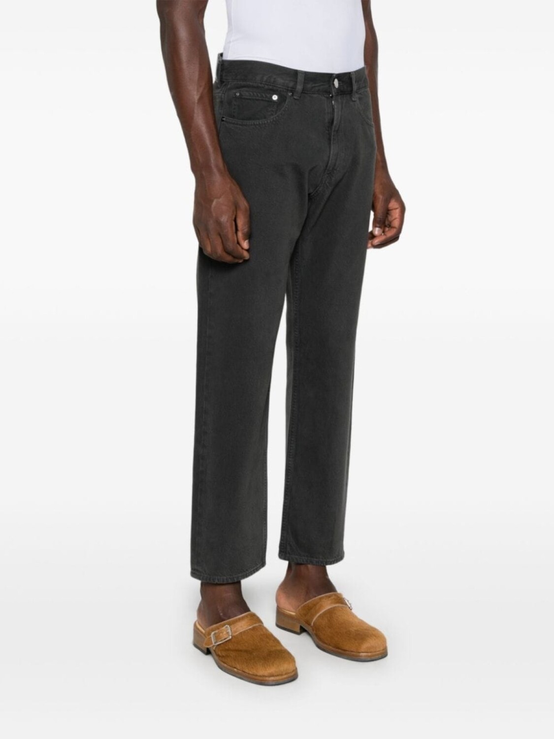 Темно-серый, хлопок, деним, нашивка сзади, застежка на молнии и пуговице спереди, петли для ремня, классическая пятикарманная модель