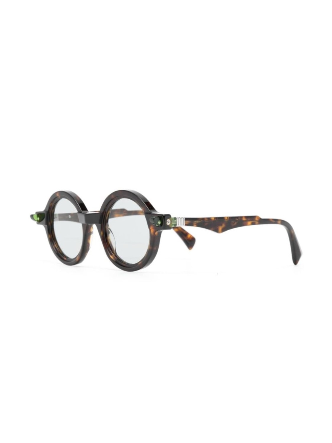 Шоколадный, ацетат, прозрачные линзы, круглая оправа, прямые дужки и дужки с закругленными концами. В комплект входит защитный чехол для очков. Обратите внимание, что на FARFETCH продаются оправы с линзами без диоптрий.