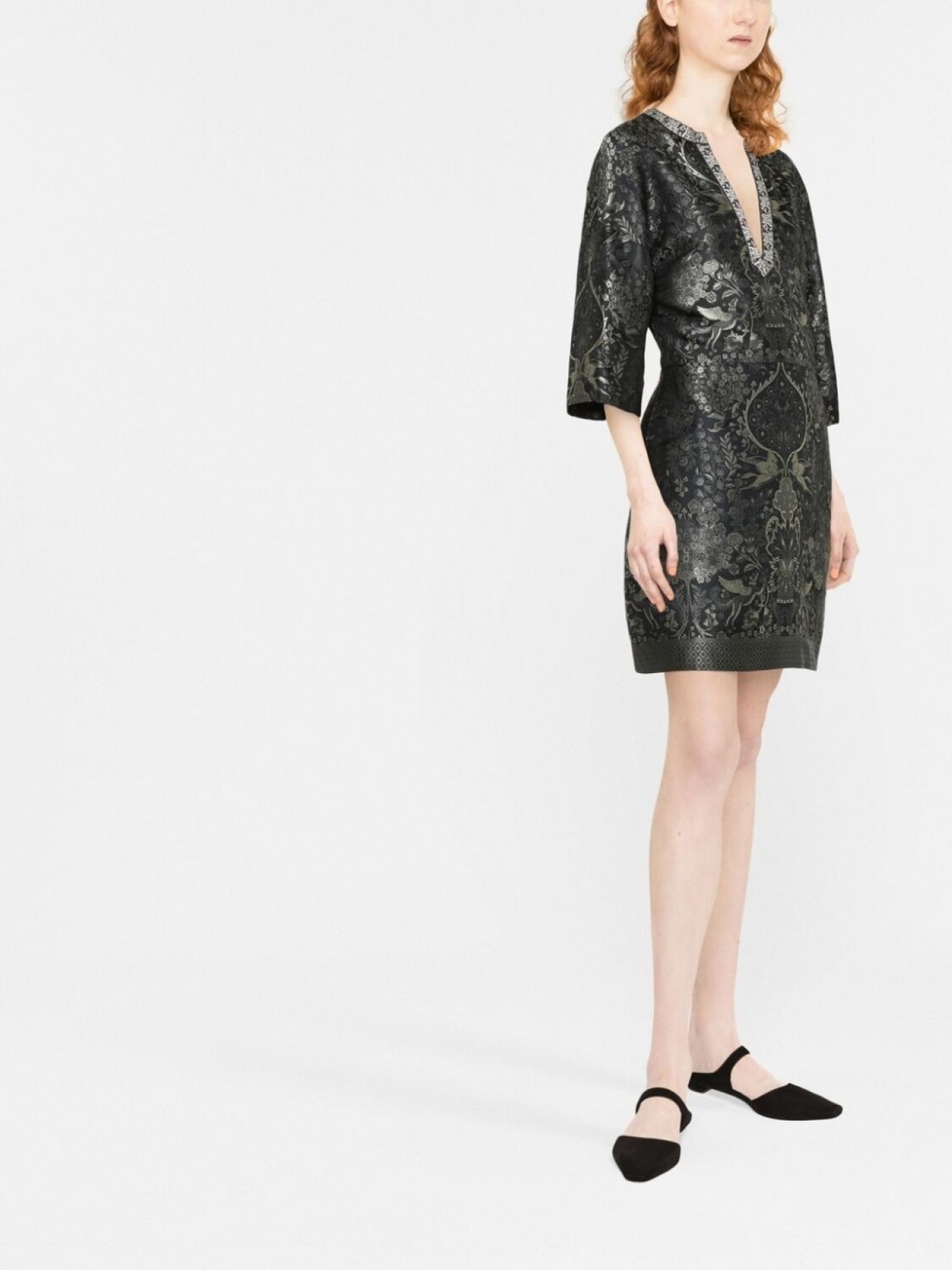 ETRO платье мини с цветочной вышивкой, черный