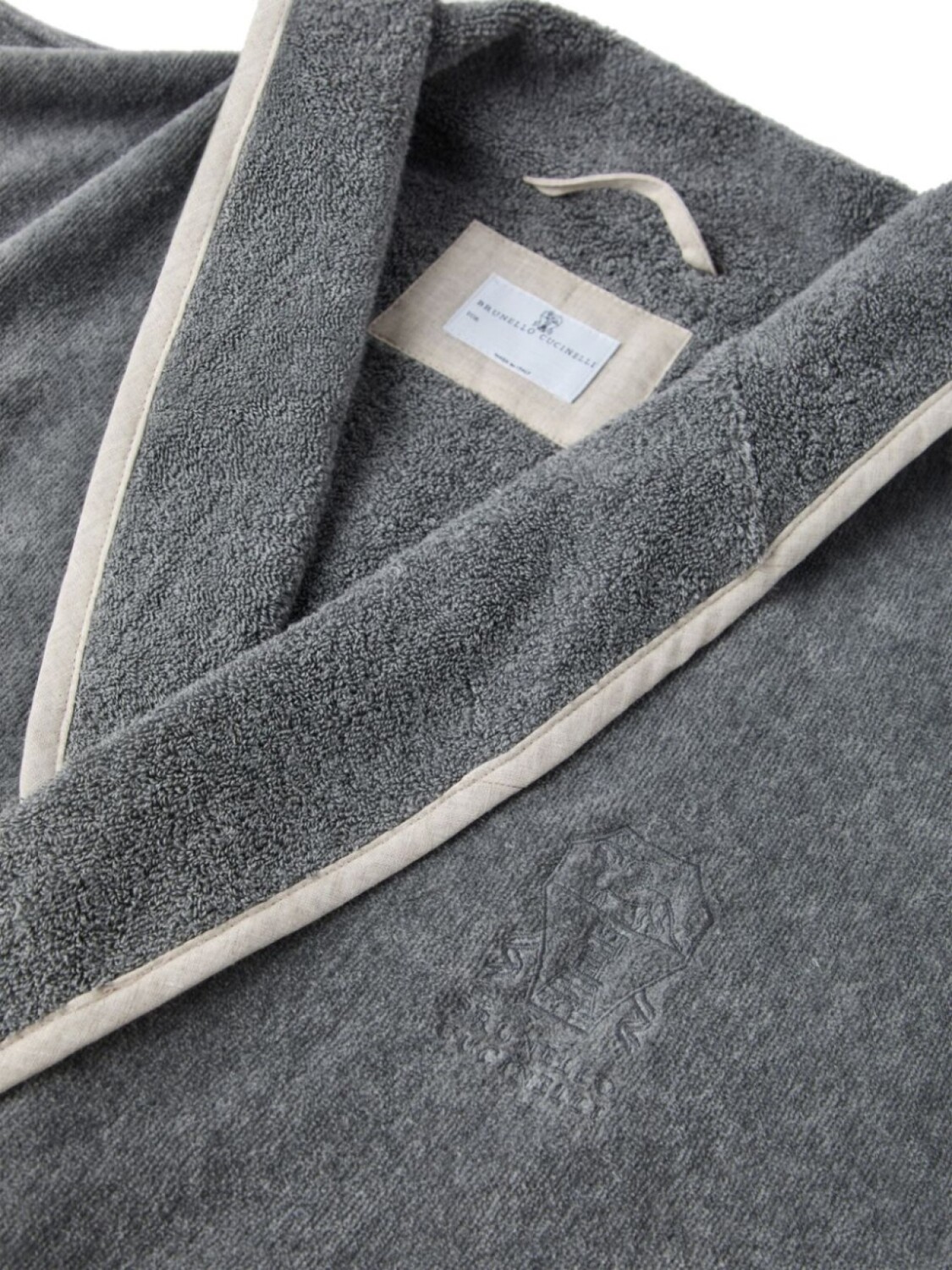 Brunello Cucinelli халат с вышитым логотипом, серый