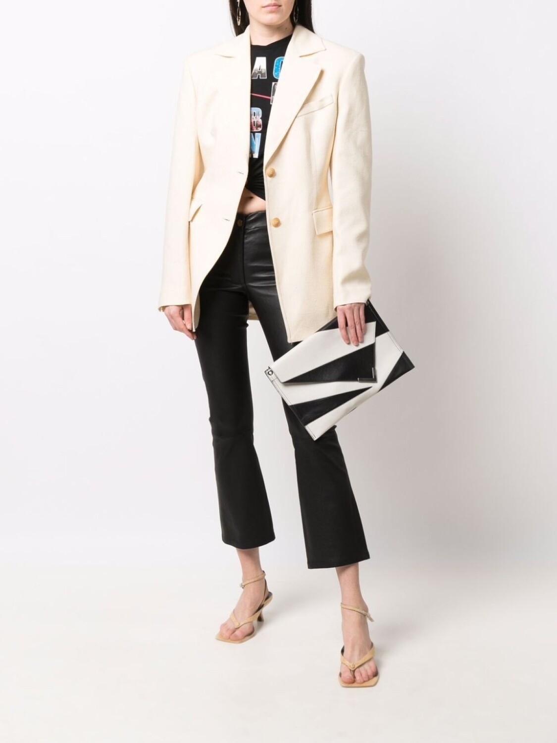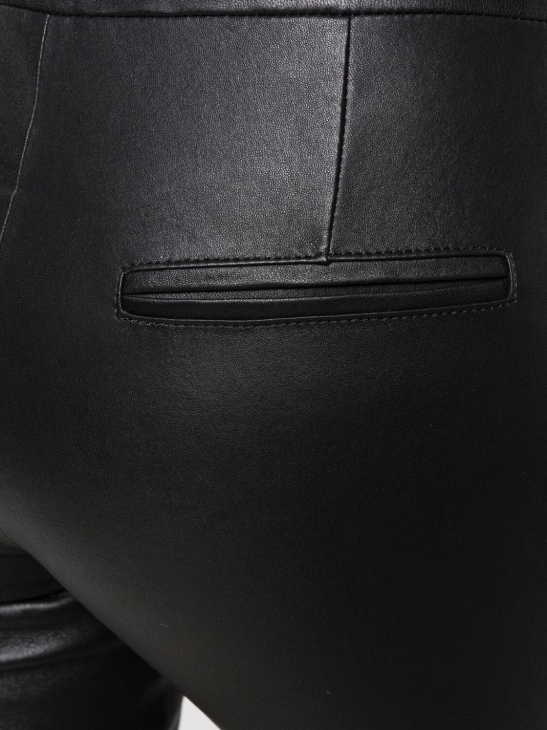 Укороченная длина, расклешенный крой, застежка на молнии и пуговице спереди и два кармана с листочкой сзади. Цвет: черный.