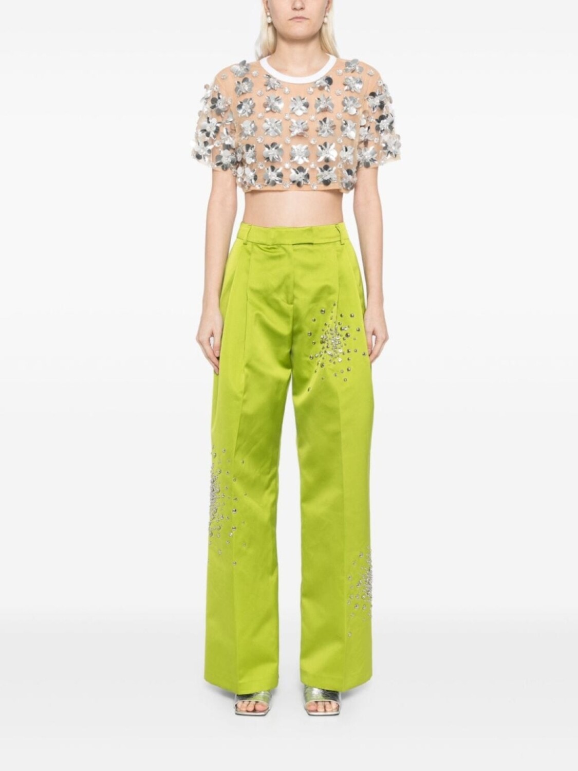 DES PHEMMES брюки, украшенные стразами, зеленый