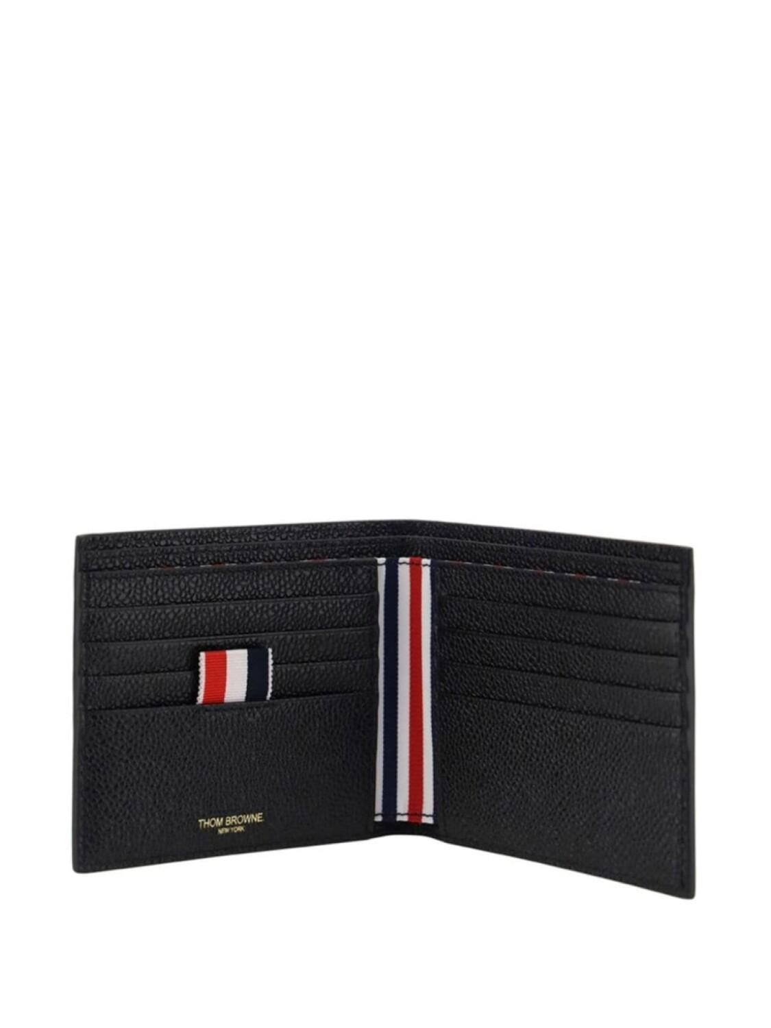 Черный кожаный бумажник с полосатой отделкой от Thom Browne.