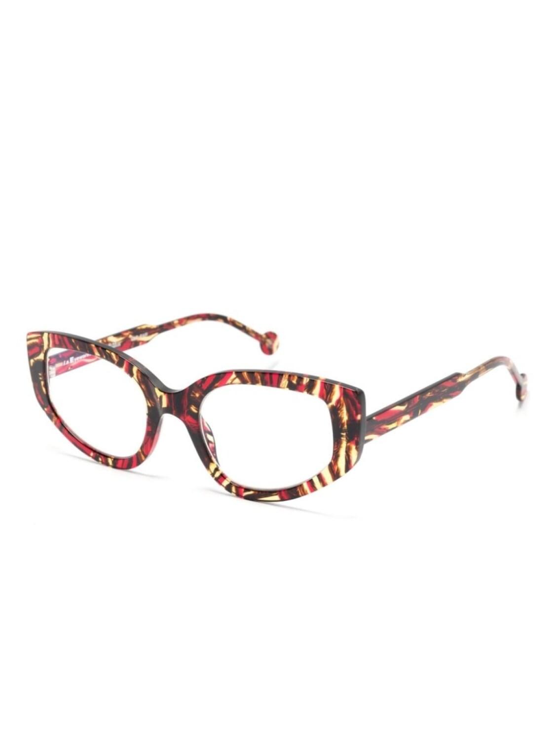Кедровый коричневый/малиново-розовый ацетат прозрачный дизайн абстрактный узор принт оправа «кошачий глаз» прозрачные линзы прямые дужки изогнутые кончики Все очки от FARFETCH продаются в оправах без рецепта.